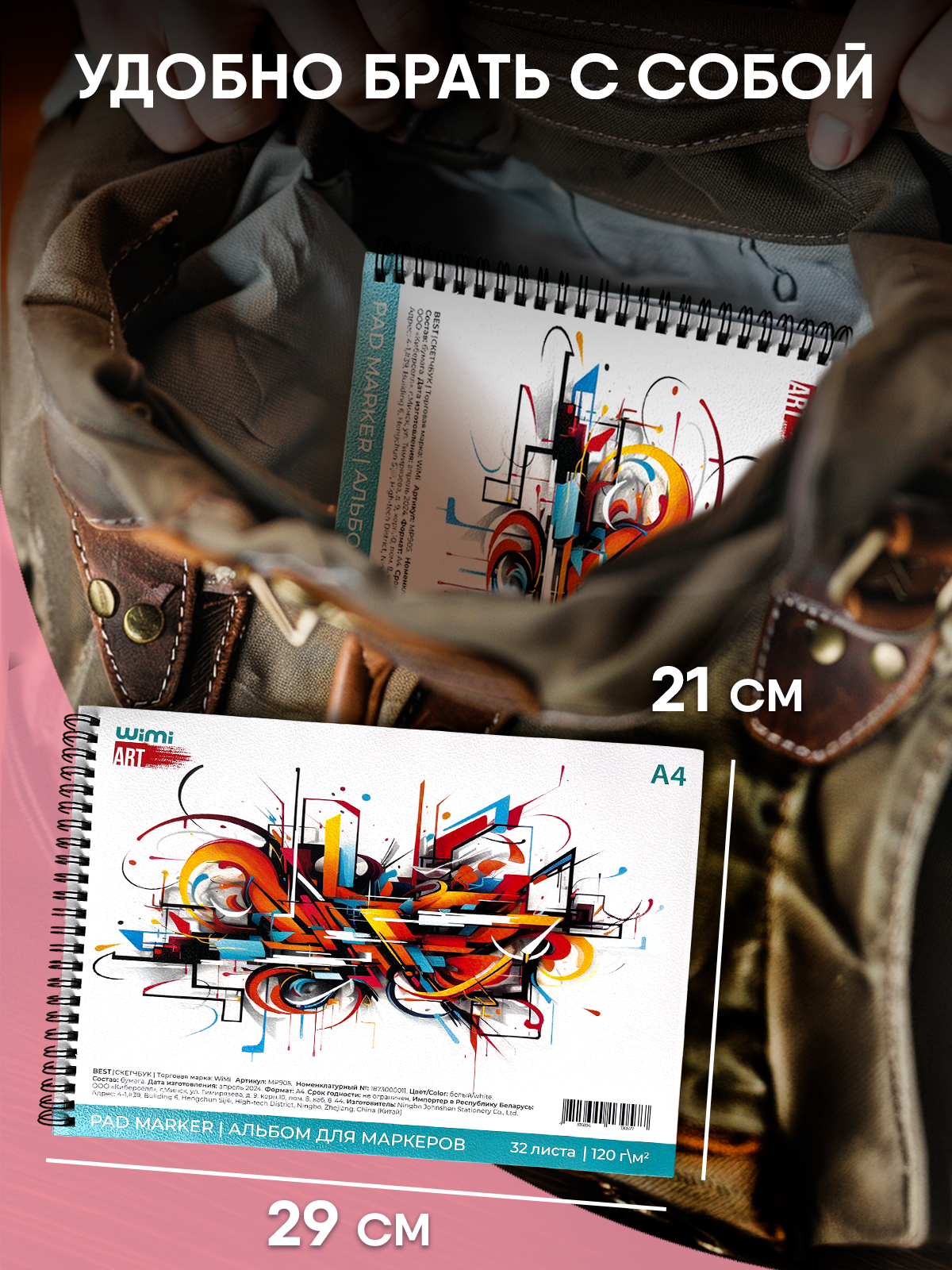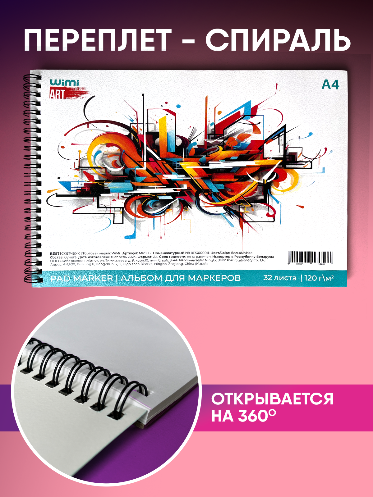 Скетчбук WiMi, для маркеров/ карандашей/ фломастеров, на спирали, А4, 32 листа интересное:
