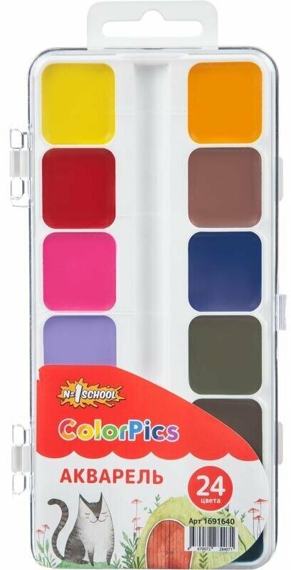 Краски акварельные №1 School ColorPics набор 24 цв б/кисти пластик