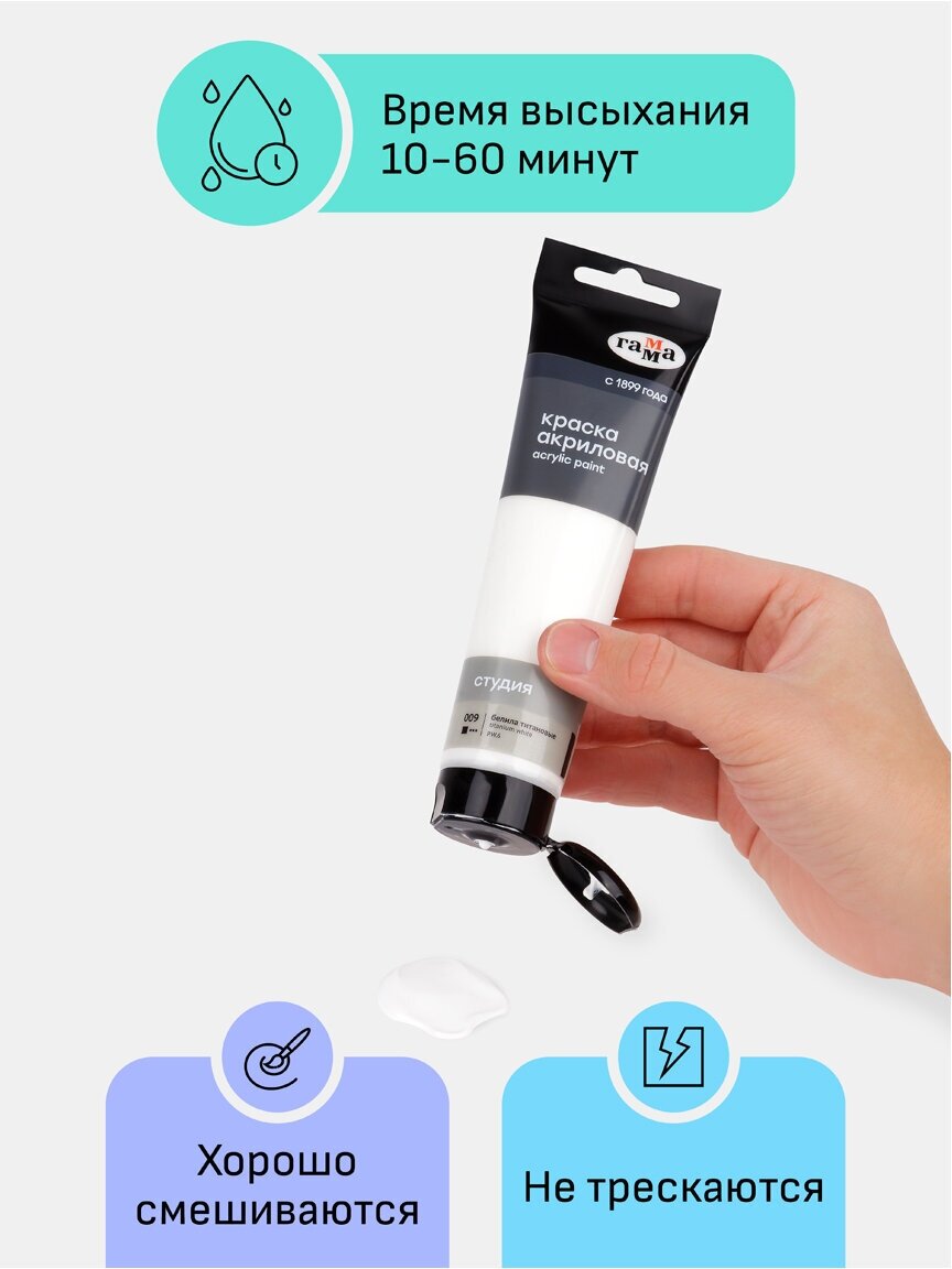 Краска акриловая художественная Гамма "Студия", 110мл, пластиковая туба, белила титановые