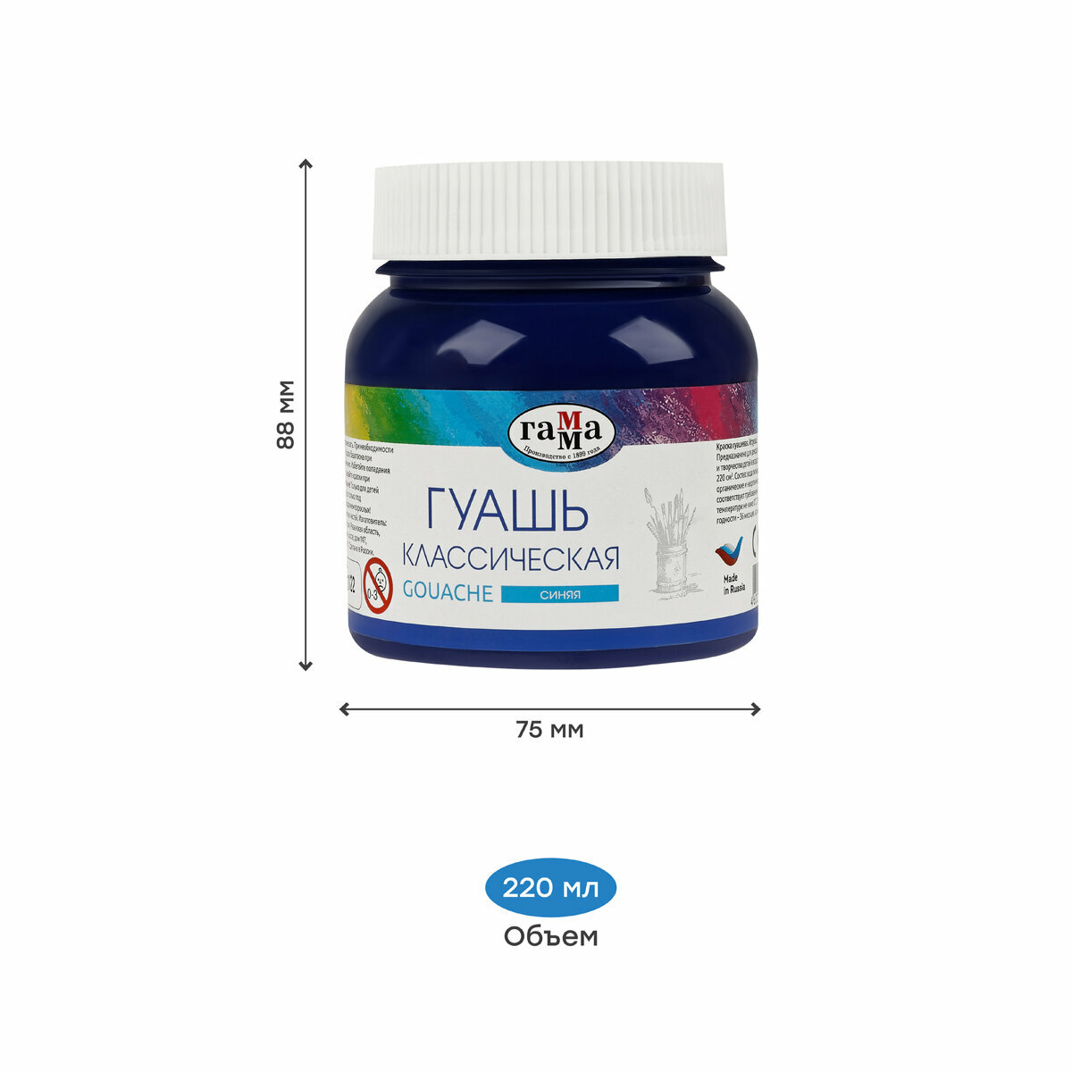 Гуашь Гамма "Классическая", синяя, 220 мл (221066232/2)