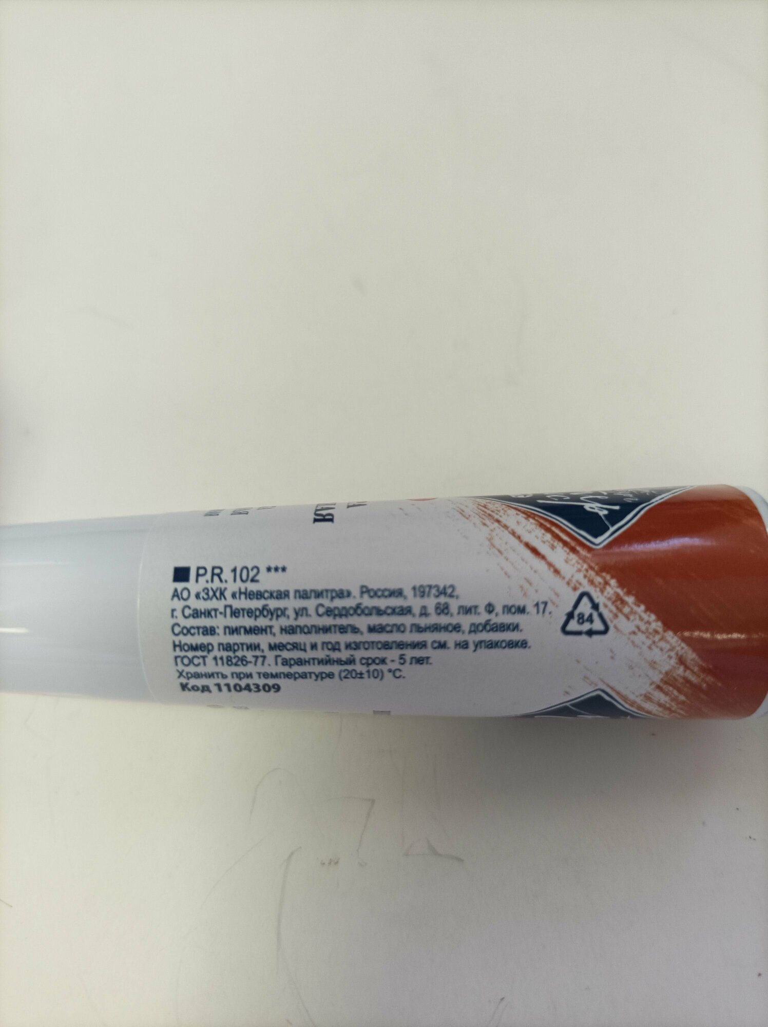 Краска масляная Невская палитра художественная 46 мл в тубе Мастер-Класс Кадмий светло-красный (1104302)