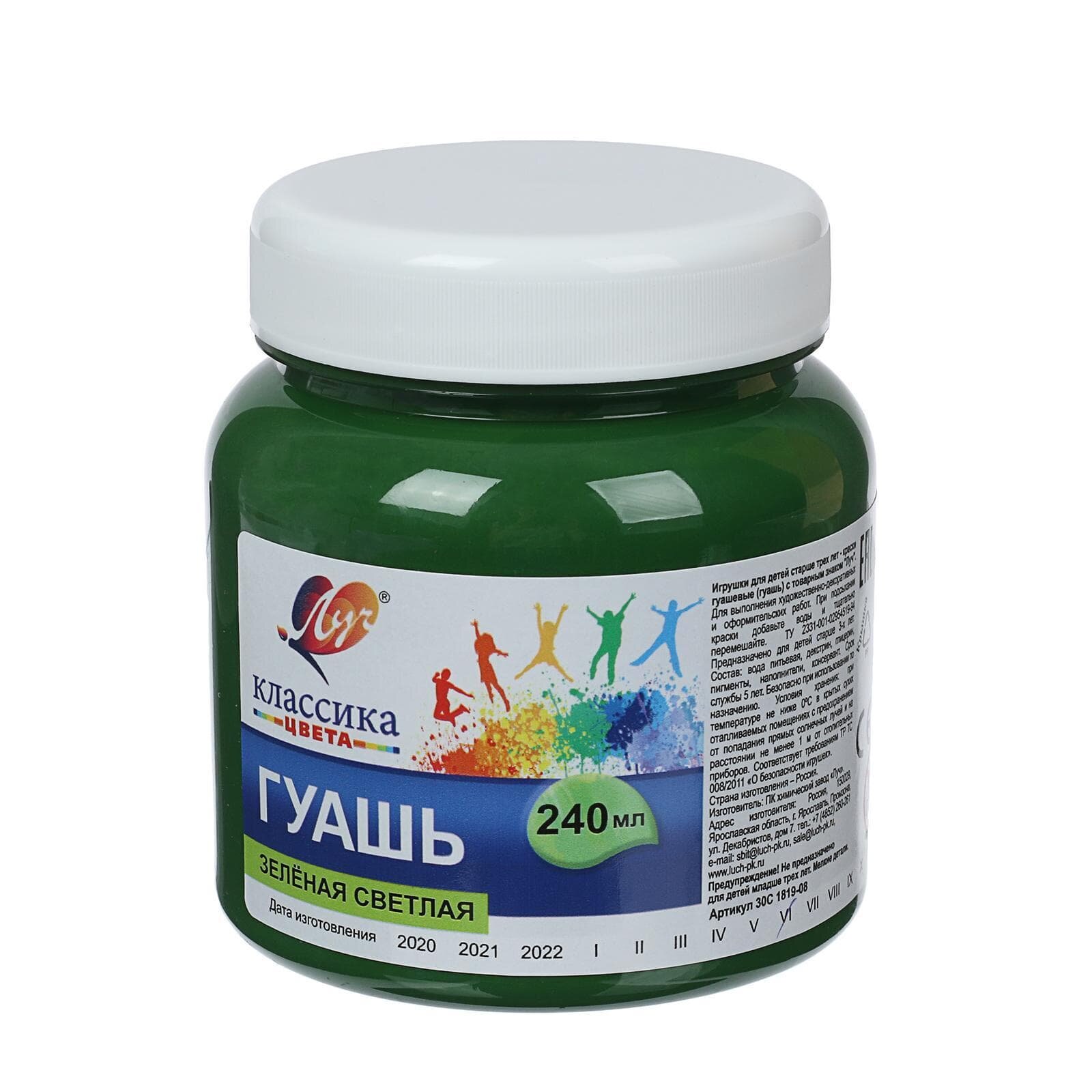 Гуашь художественная Луч 1 шт "Классика", 240 мл, зеленая светлая (30С 1819-08)