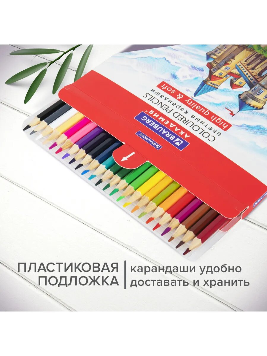 Сохранить3шт Карандаши цветные мягкие BRAUBERG академия, 24 цвета, ш интересное: