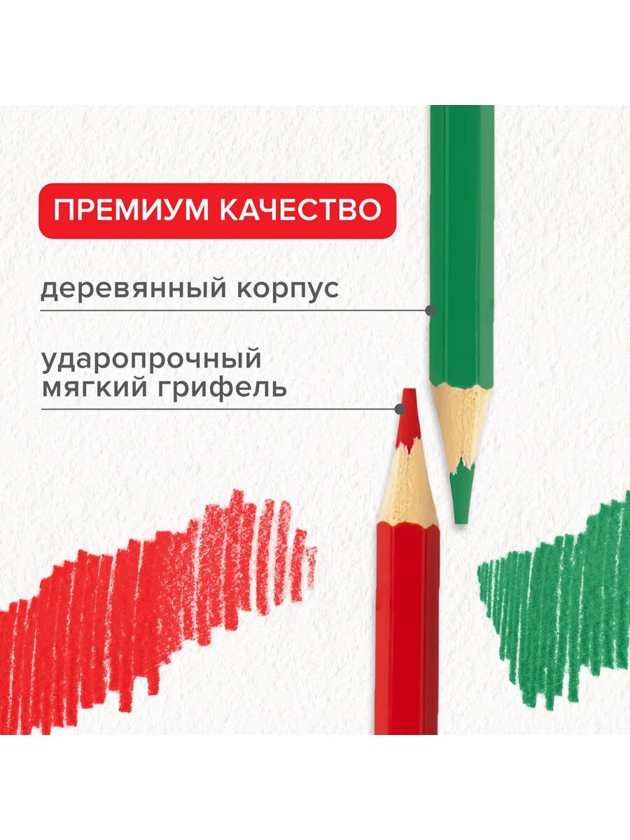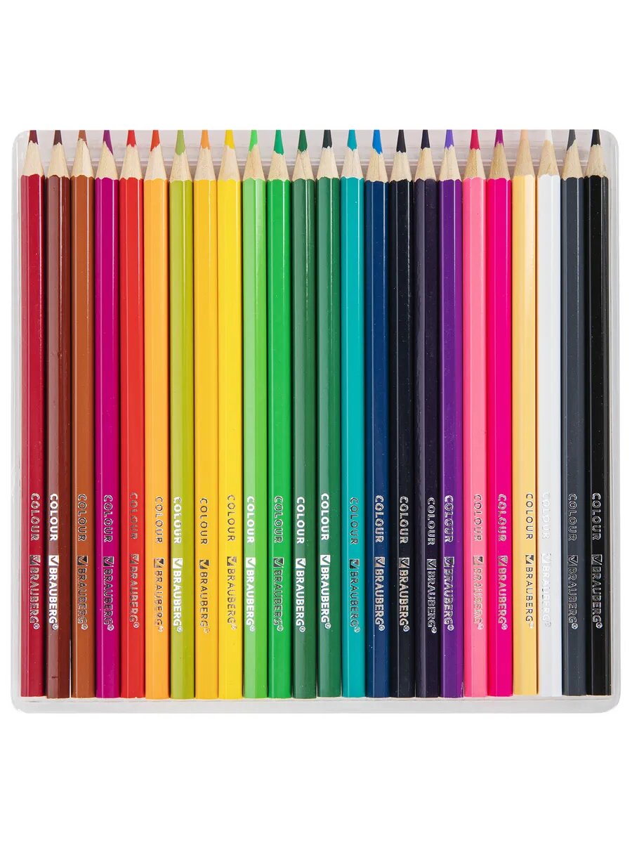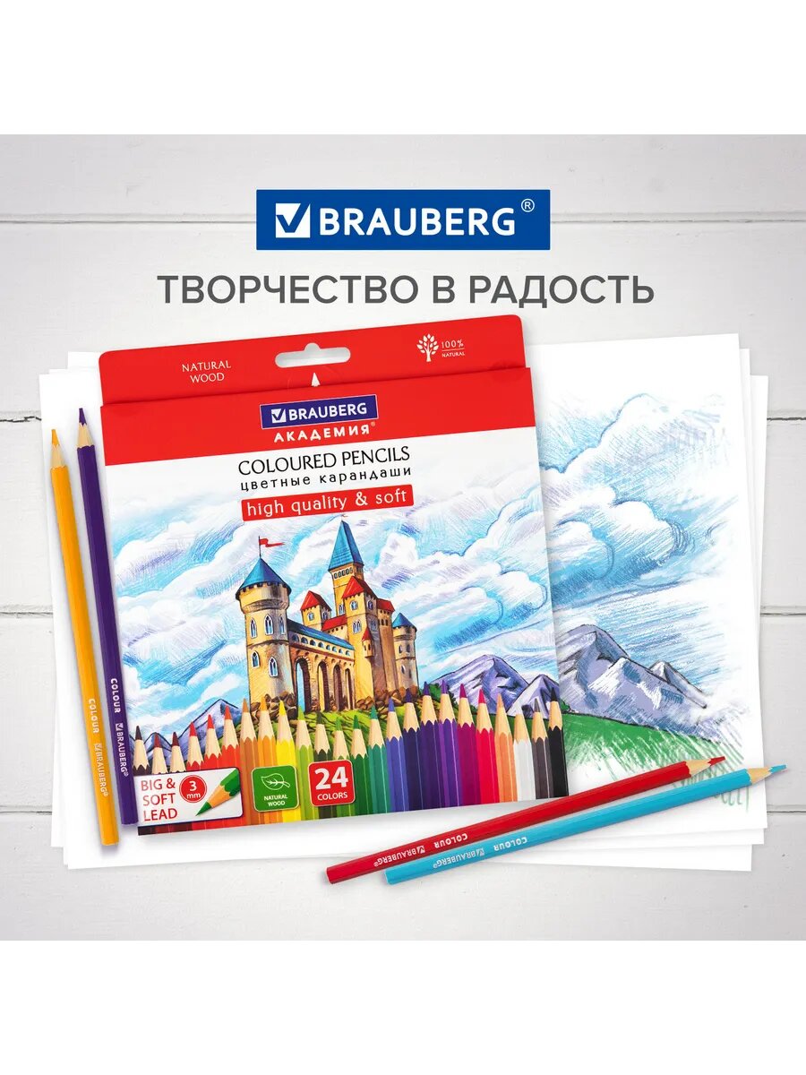 Карандаши деревянные цветные для рисования мягкие Brauberg Академия, 24 цвета, шестигранные, грифель 3 мм, натуральное дерево, 181866