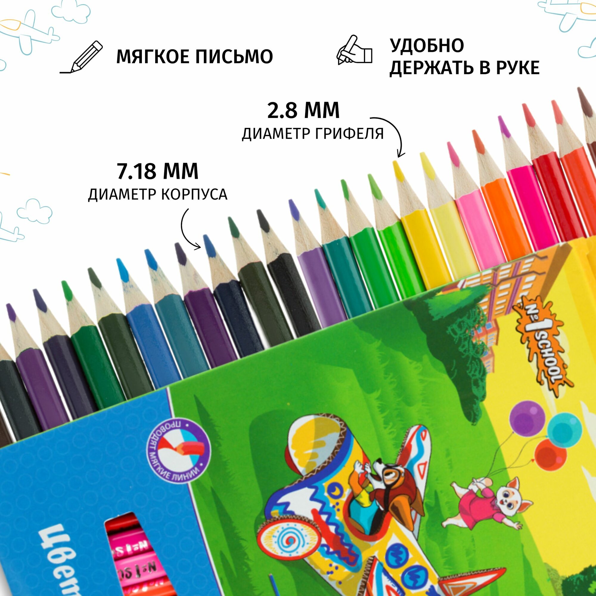 Карандаши цветные №1 School Шустрики, трехгранные, толщина грифеля 2,8 мм, набор 24 цвета интересное: