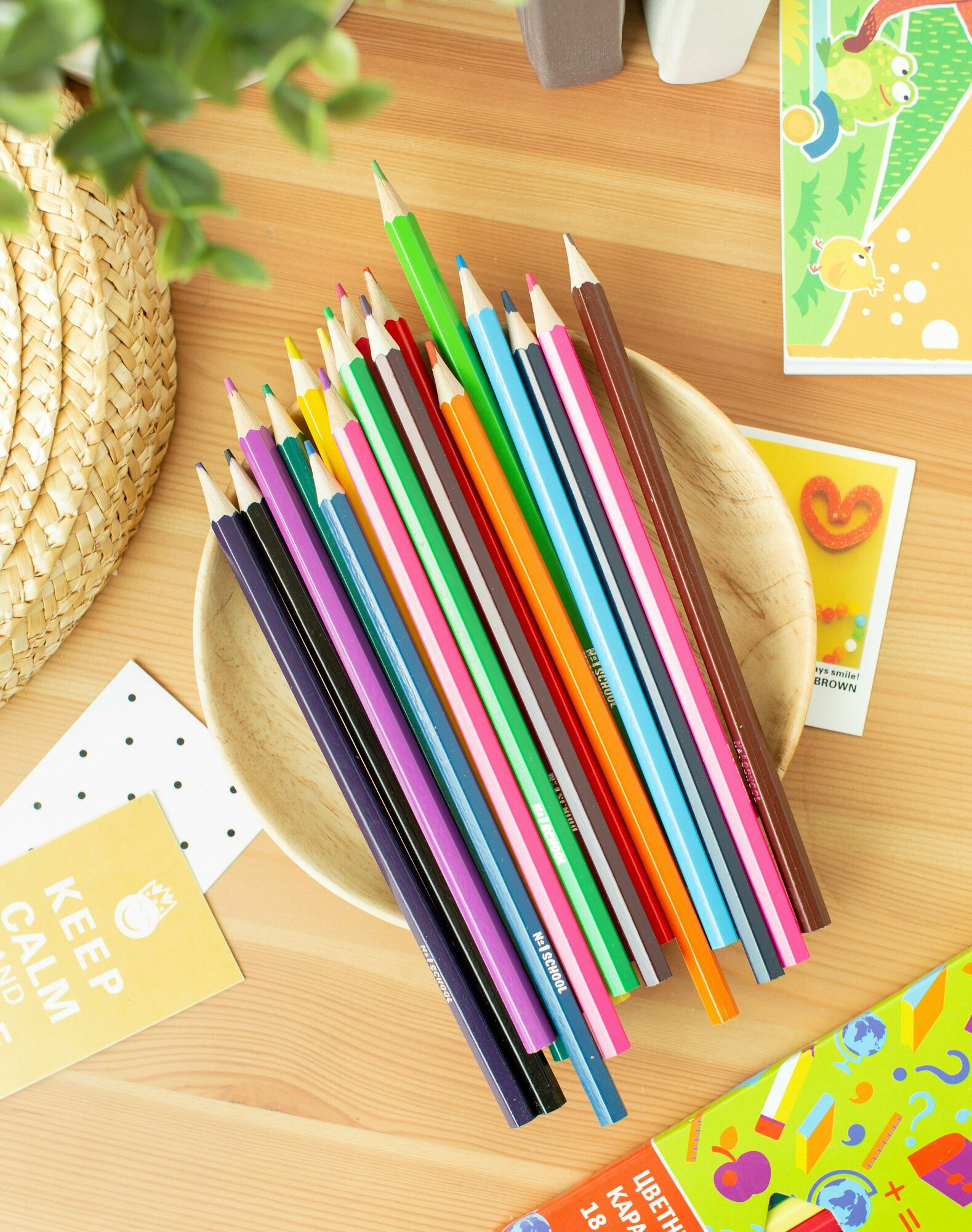 Карандаши цветные №1 School, трехгранные, толщина грифеля 2,8 мм, набор 24 цвета