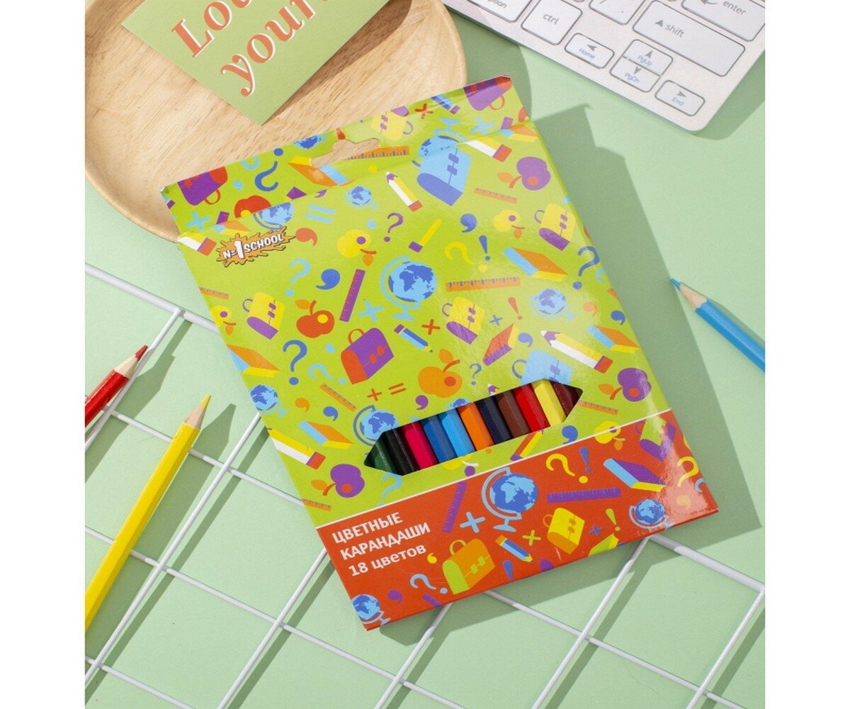Карандаши цветные №1 School, шестигранные, толщина грифеля 2,65 мм, набор 18 цветов