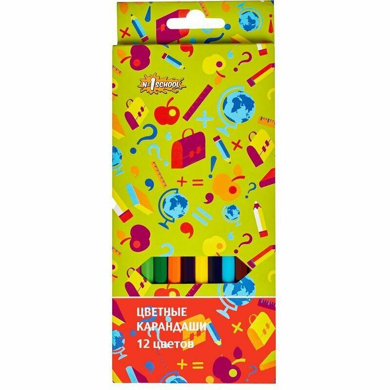 Купить Карандаши цветные №1 School Отличник, шестигранные, толщина грифеля 2,65 мм, набор 12 цветов