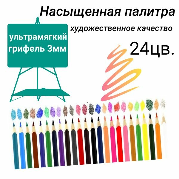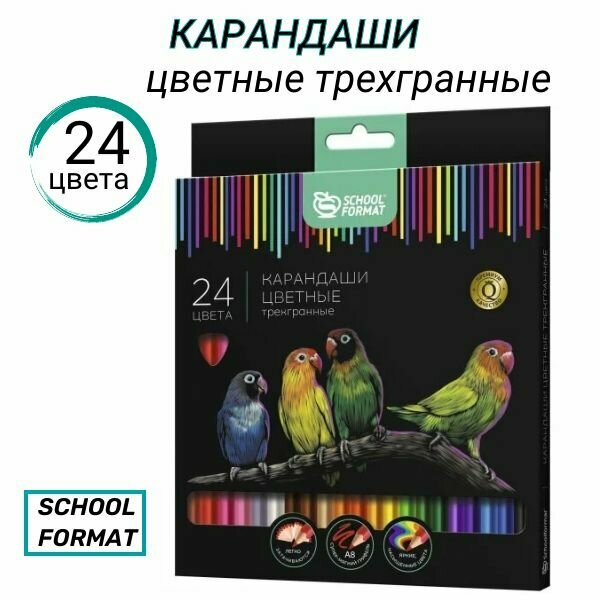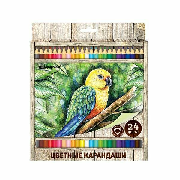 Цветные карандаши schoolформат "Дикая планета", 24 оттенка, трехгранные, корпус деревянный (КЦ24-ДП)