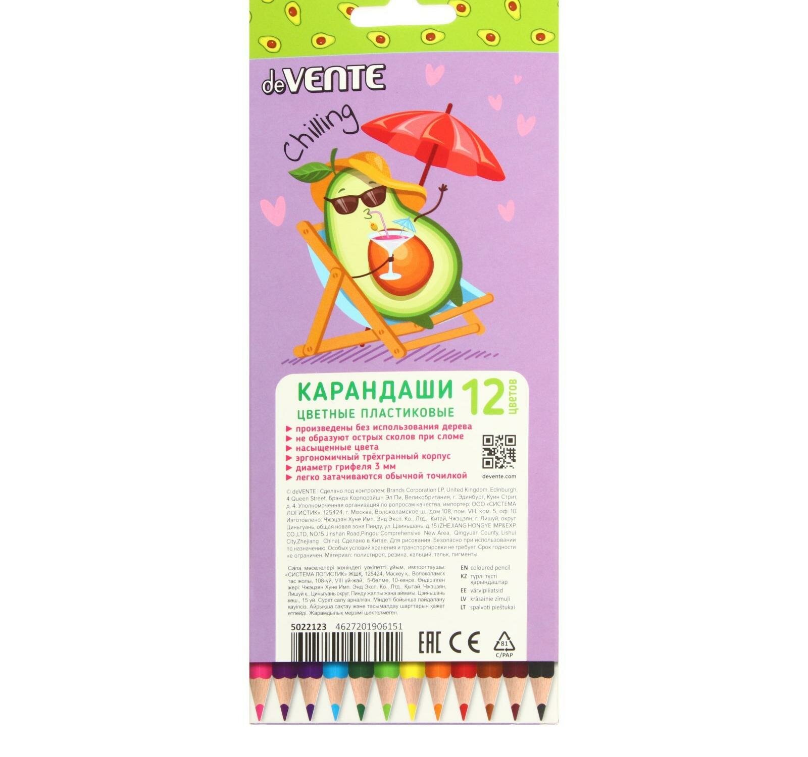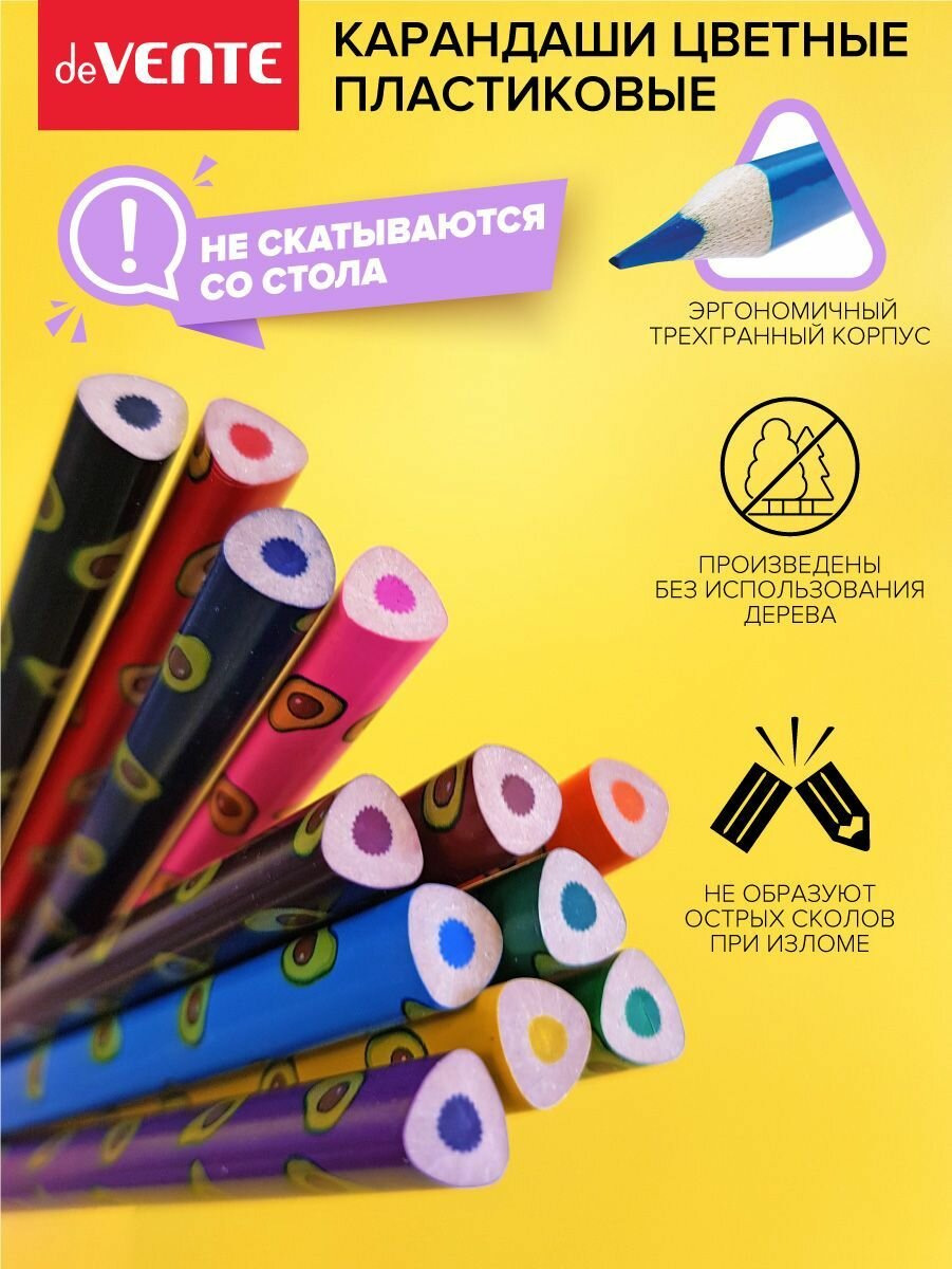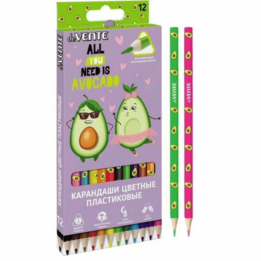 Купить Карандаши цветные 12 цв. ". Avocado" 2М трёхгранные пластиковые / цветные карандаши для рисования
