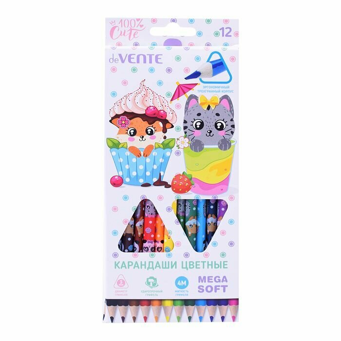 Цветные карандаши deVENTE "Trio Mega Soft", 48 цветов, 4М, диаметр грифеля 3 мм, трехгранные (5025000)