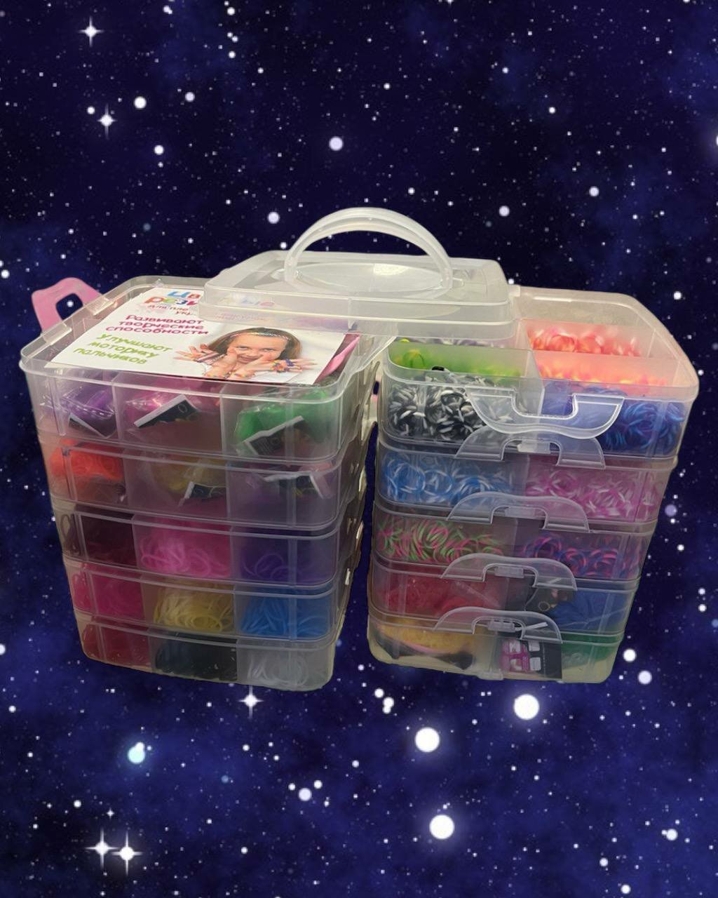 Большой набор резинок для плетения, 14400 шт бокс 10 ярусов квадратный интересное: