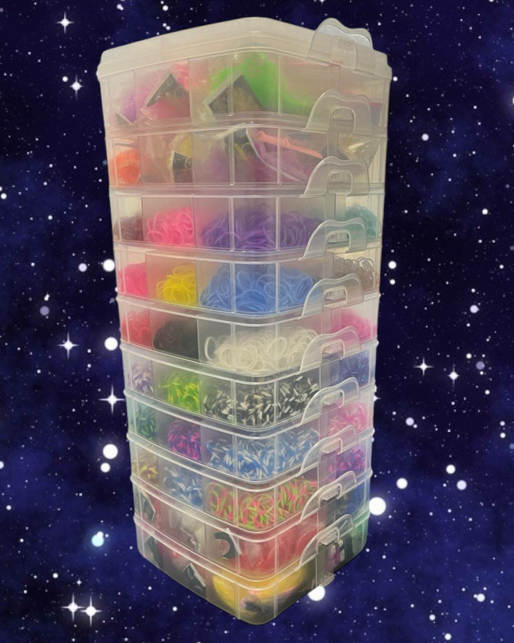 Купить Большой набор резинок для плетения, 14400 шт бокс 10 ярусов квадратный