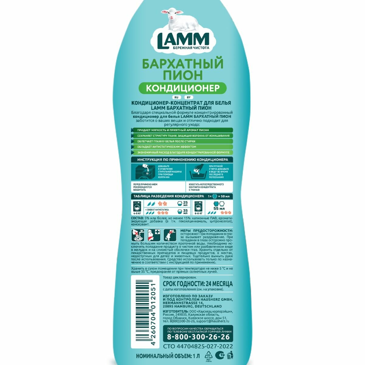 Купить LAMM Бархатный пион кондиционер для белья универсальный концентрат ополаскиватель антистатик для всех типов тканей 40 стирок 1 л