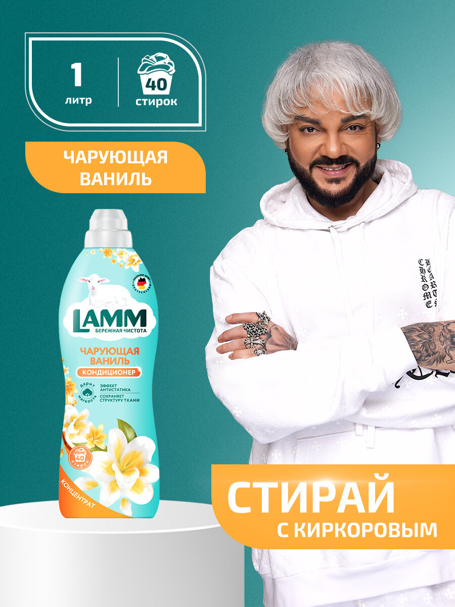 LAMM Чарующая ваниль кондиционер для белья универсальный концентрат ополаскиватель антистатик для всех типов тканей 1 л 40 стирок
