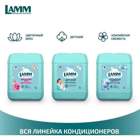 Кондиционер для белья LAMM "Альпийская свежесть", универсальный, для всех типов тканей, 200 стирок, 5 л
