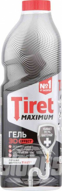 Ниже Вы можете прочитать отзывы на Гель Tiret MAXIMUM для удаления засоров в канализационных трубах, дезинфицирующий, 850 мл, ознакомится с подробными характеристиками, посмотреть интересные обзоры и фотографии на Гель Tiret MAXIMUM для удаления засоров в канализационных трубах, дезинфицирующий, 850 мл.