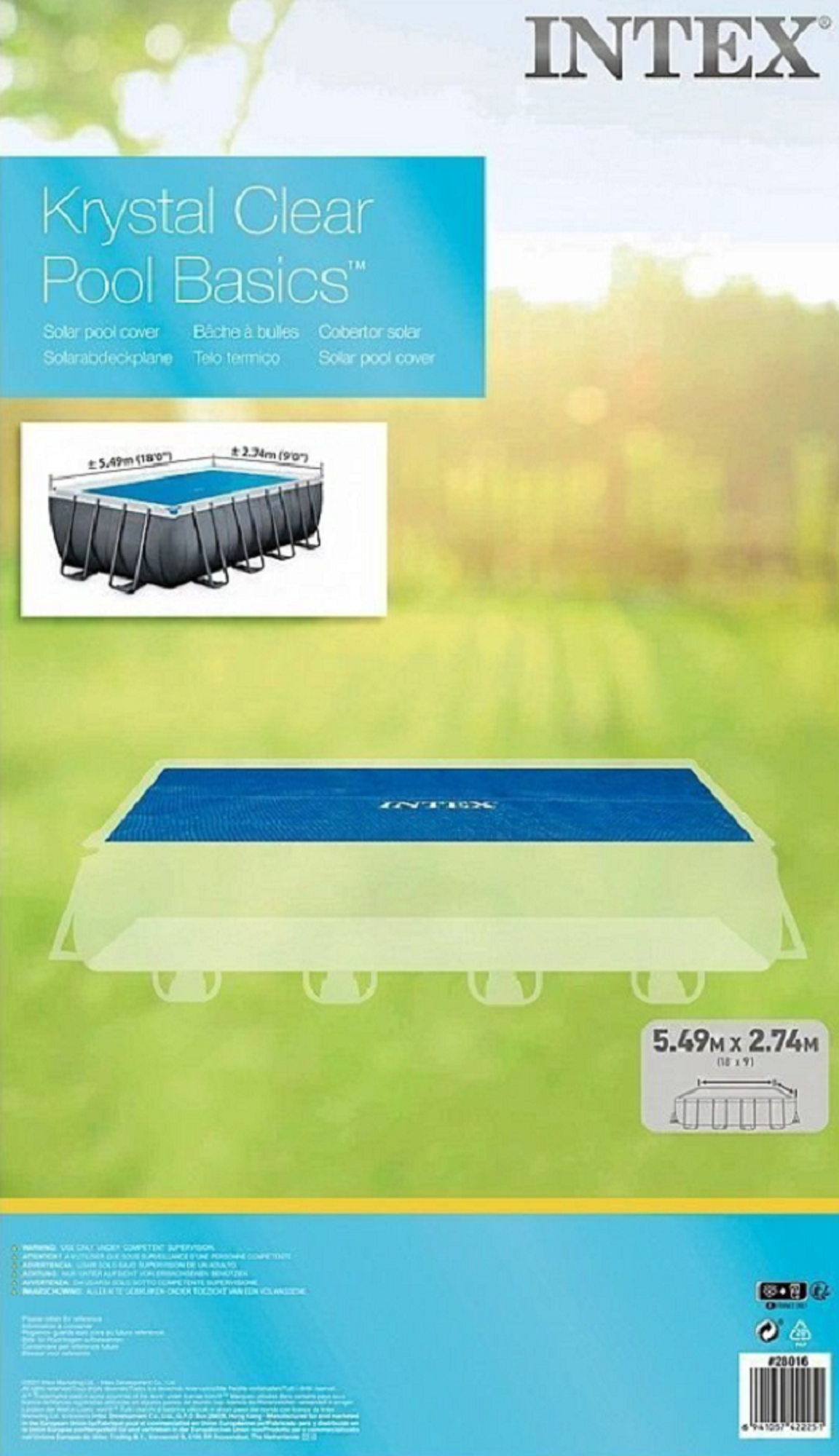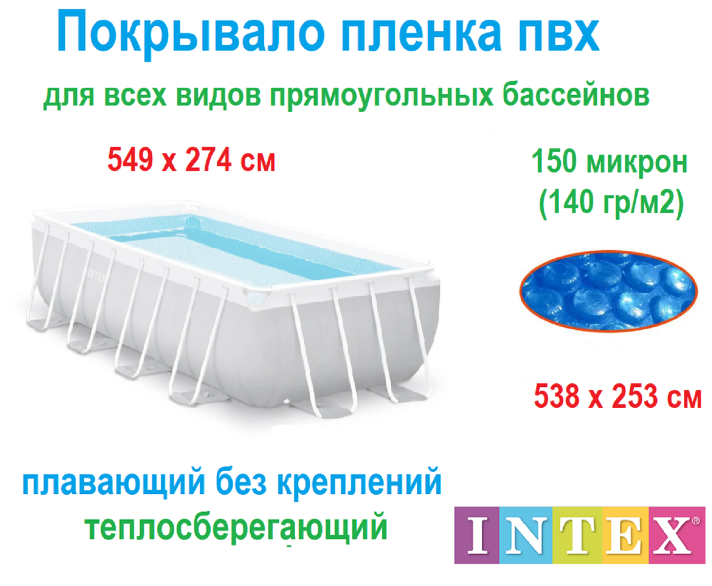 | Дополнительная информация | 28016 Пленка для бассейна 549 х 274 см, плавающее покрывало, термо тент |