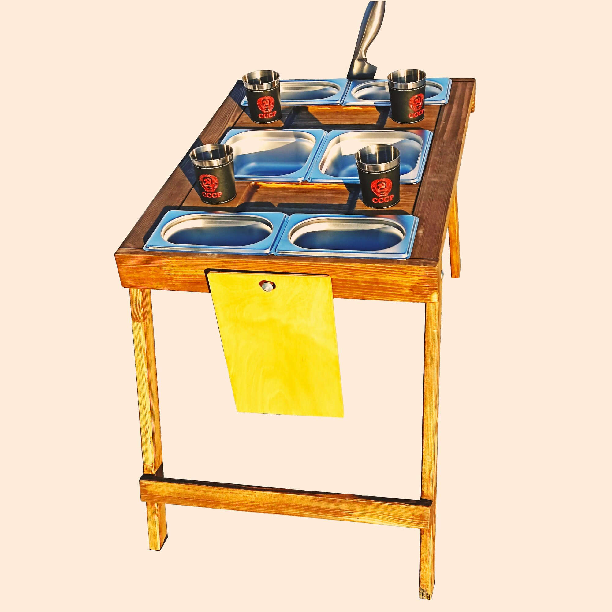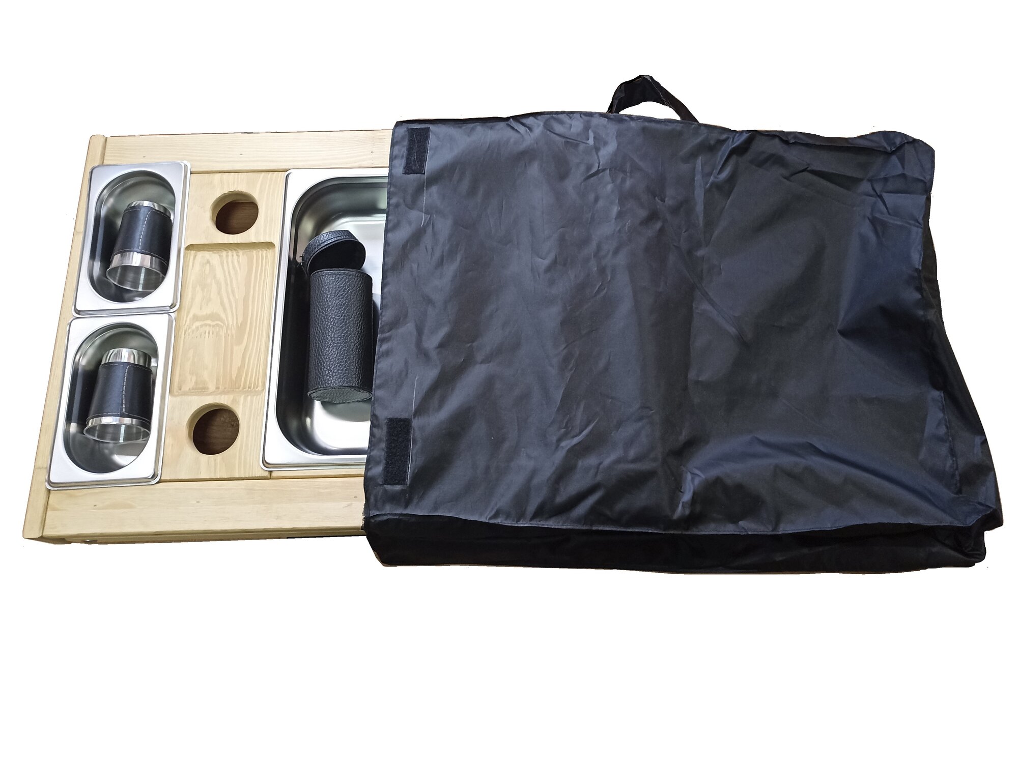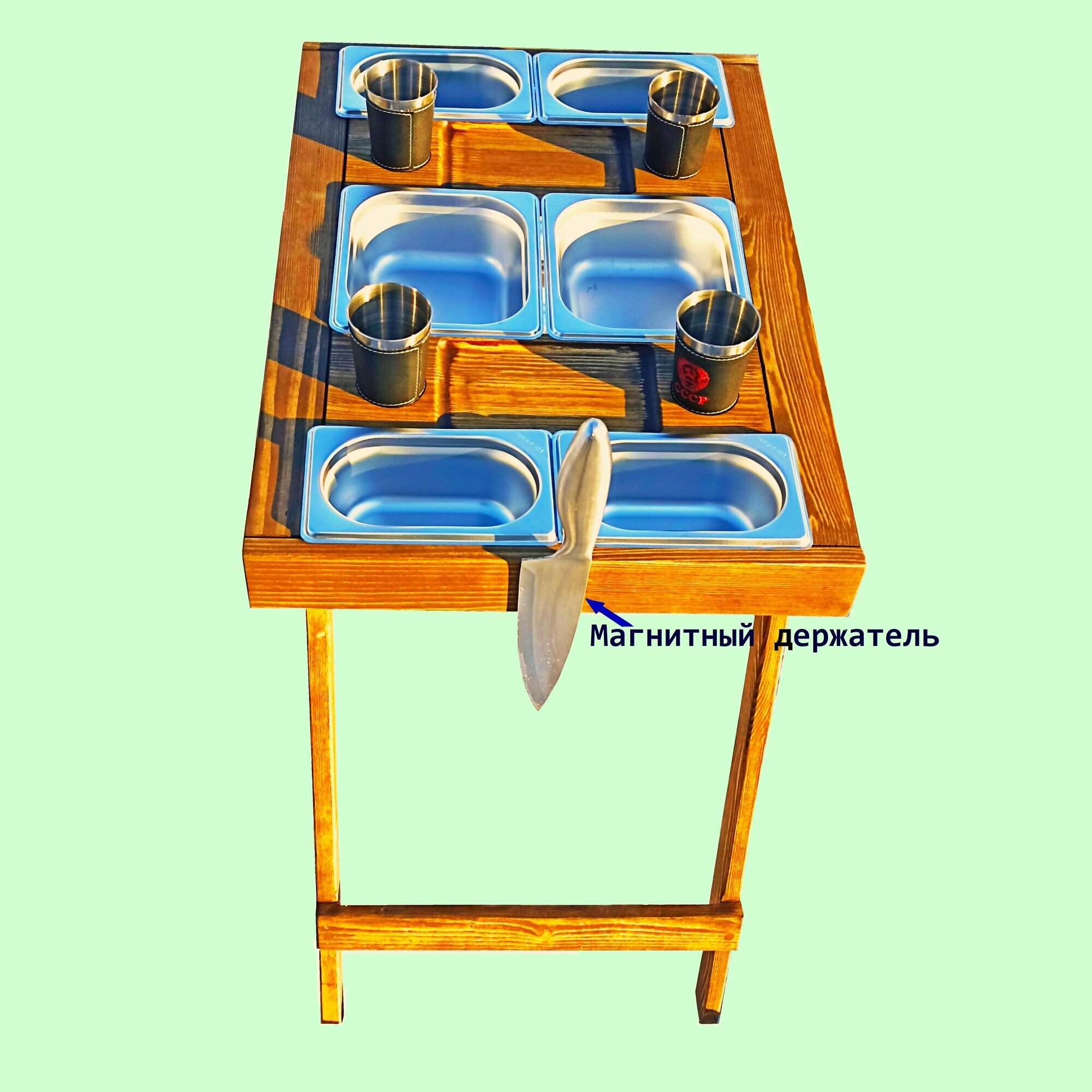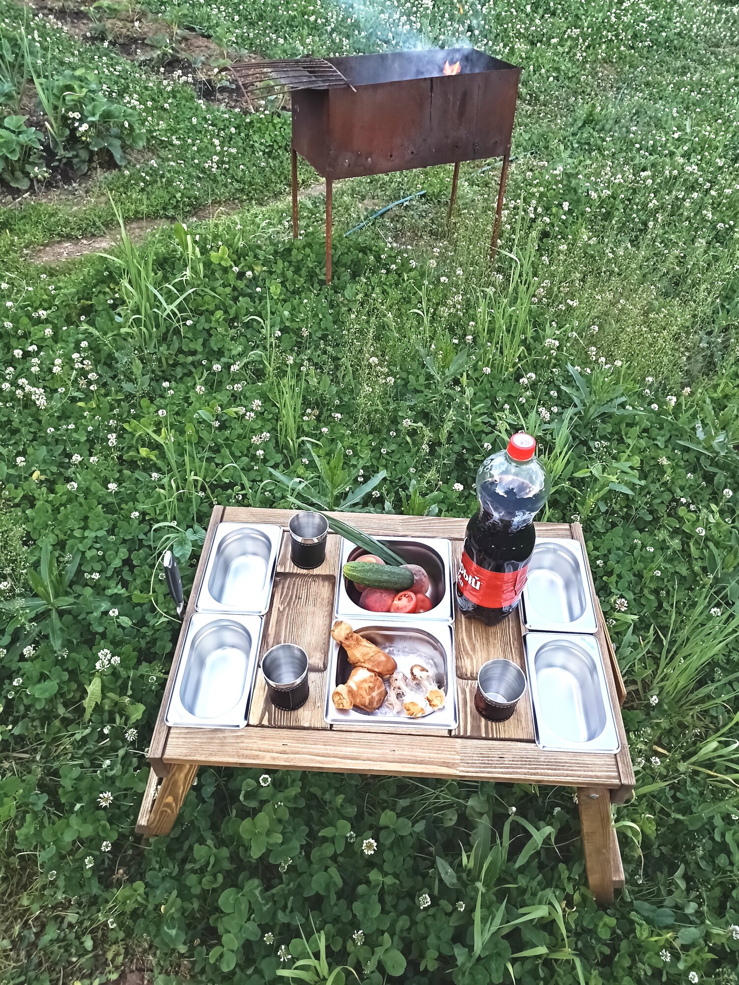 Туристический столик "Чебокс" с посудой, нержавеющая сталь, складной, 14 элементов