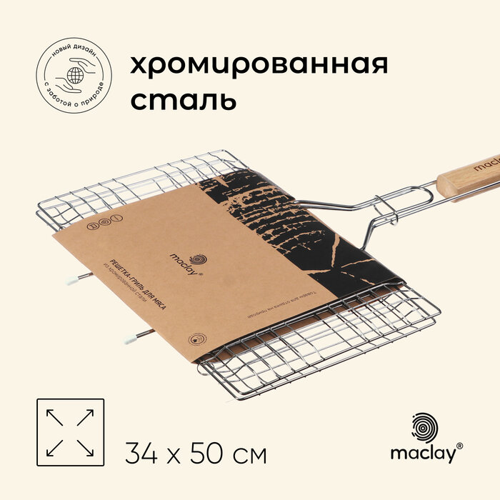 Решётка - гриль универсальная maclay, 21x34 см, хромированная сталь, для мангала