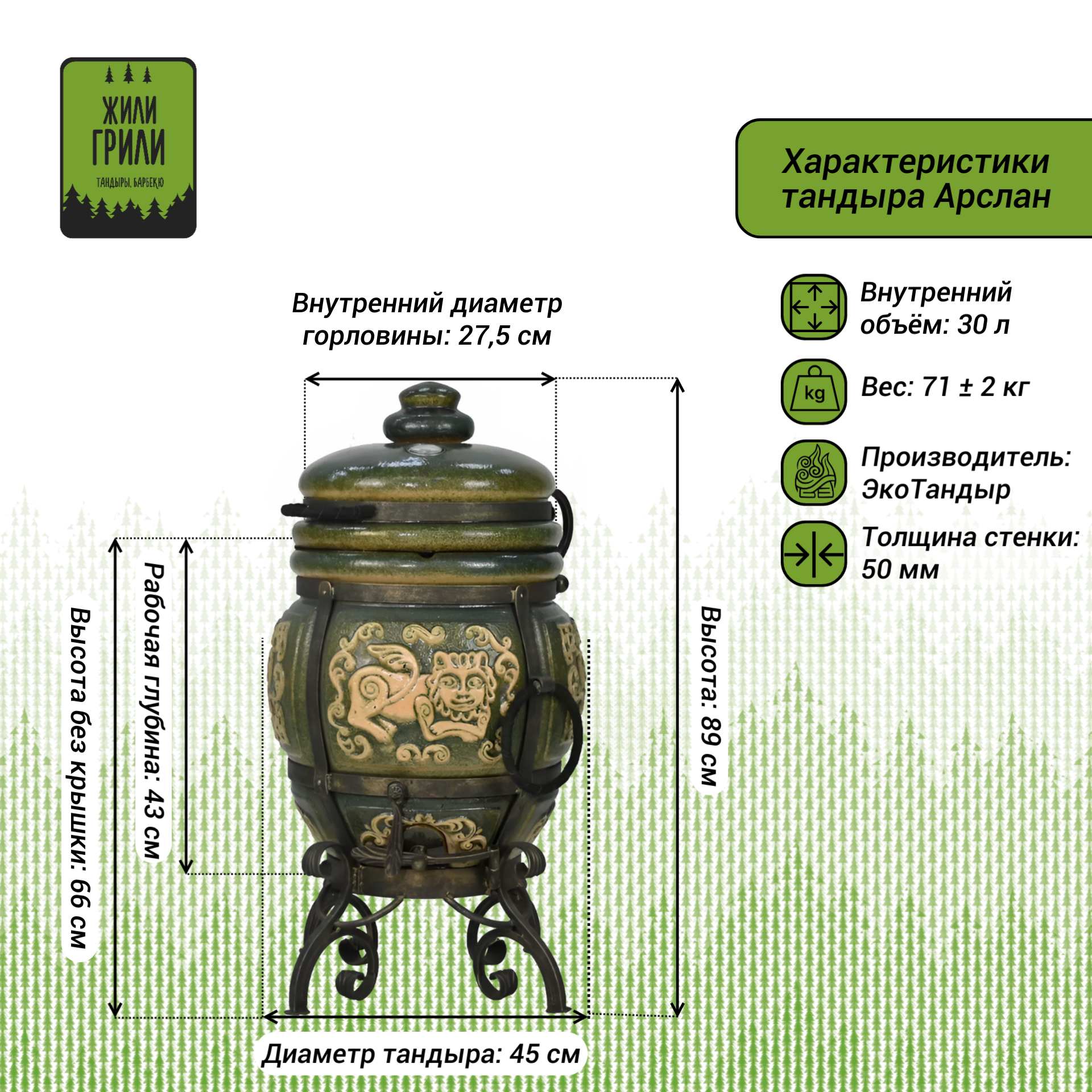 СохранитьТандыр ЭкоТандыр Арслан с откидной крышкой, малахит / чехол и сборник рецептов в подарок интересное: