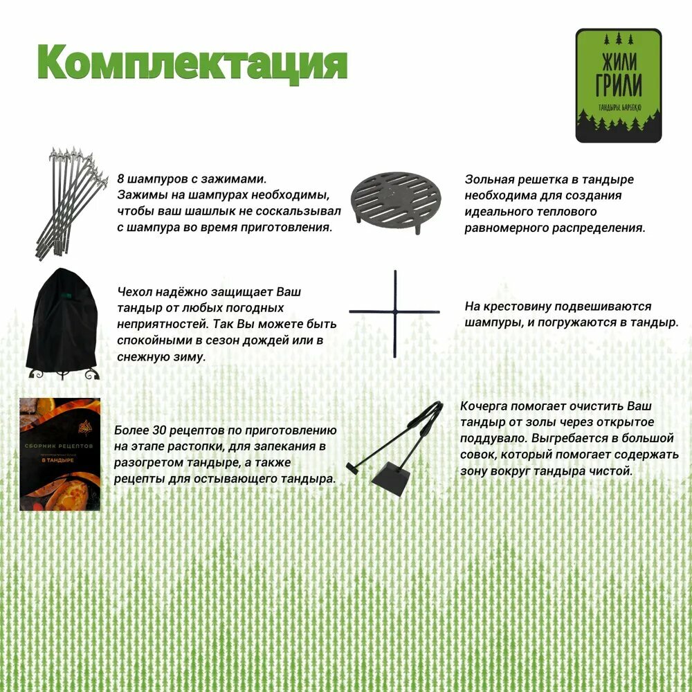 | Дополнительная информация | В комплекте 8 шампуров со специальными зажимами, кочерга, совок, зольная решетка, крестовина для подвешивания шампуров. Чехол и сборник рецептов в подарок! |