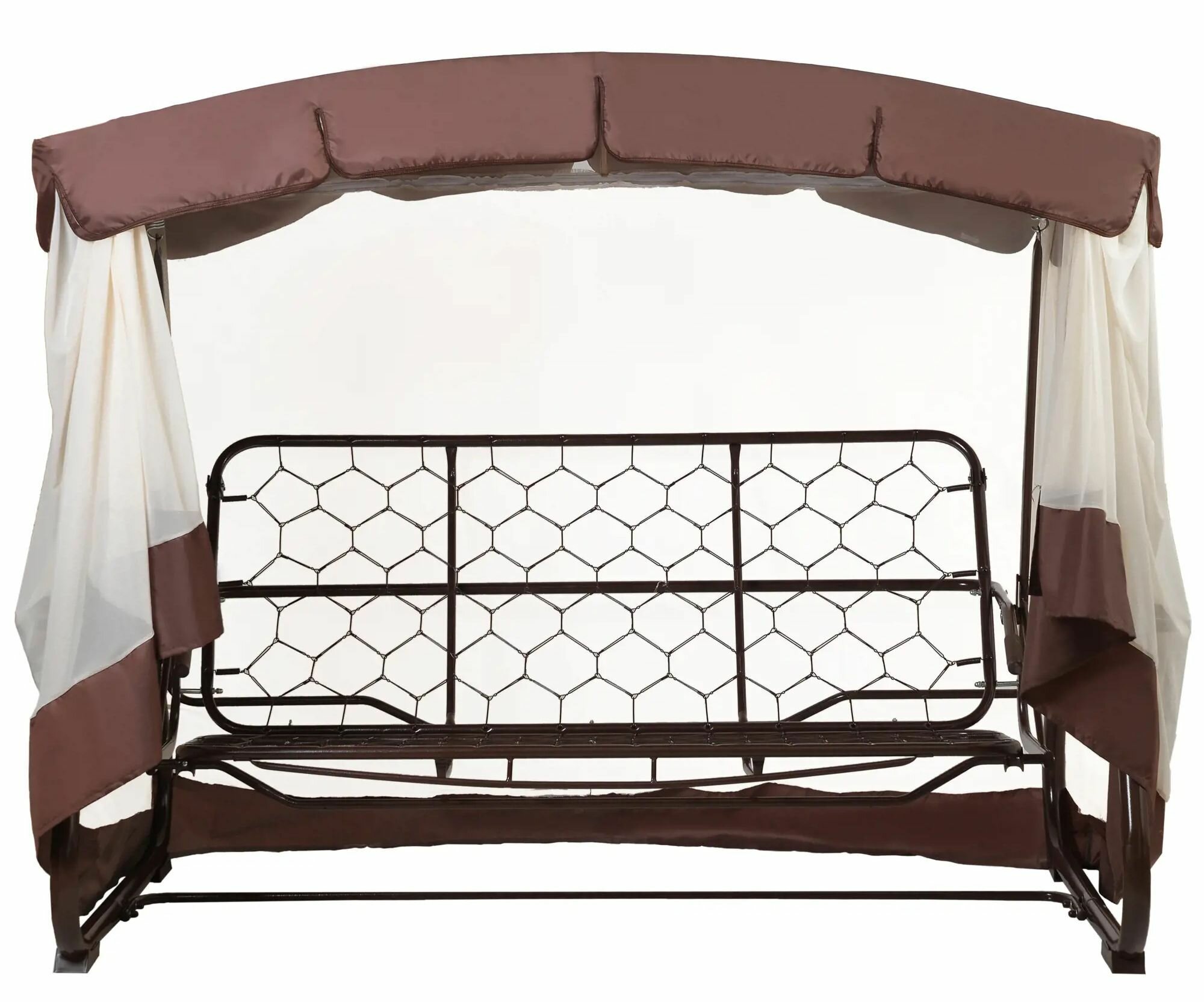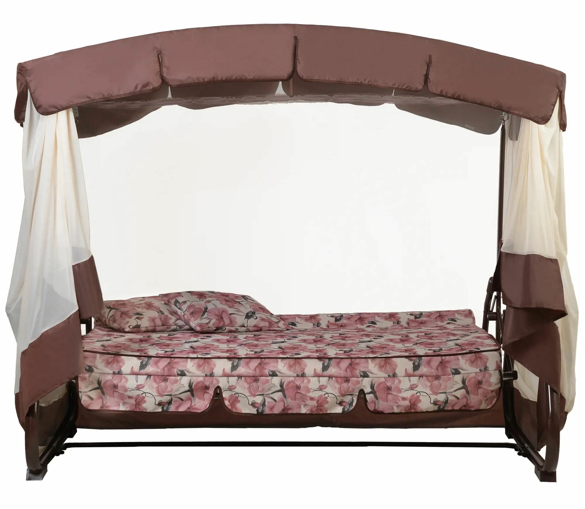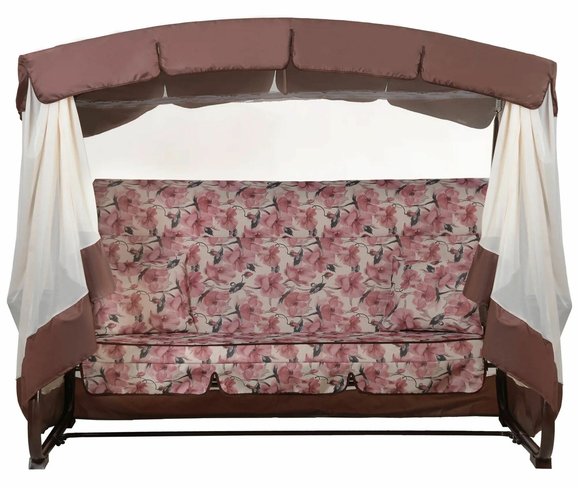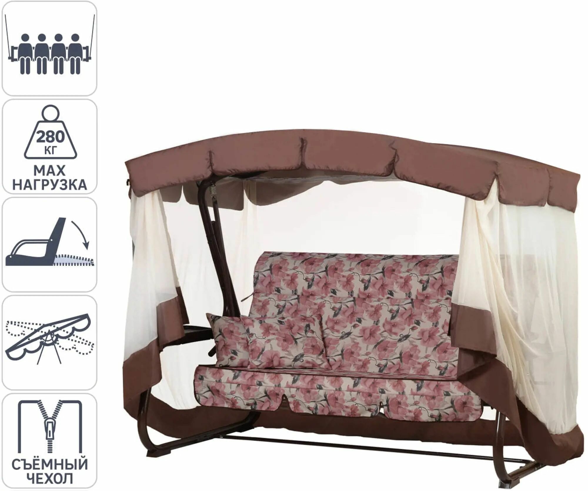 Купить Качели-павильон садовые 4-х местные (до 280 кг), цвет коричнево-розовый. Тент надежно защитит от солнца. Станут отличным местом отдыха на вашем приусадебном участке.