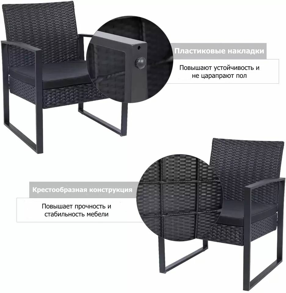 Комплект садовой мебели из ротанга, черный интересное:
