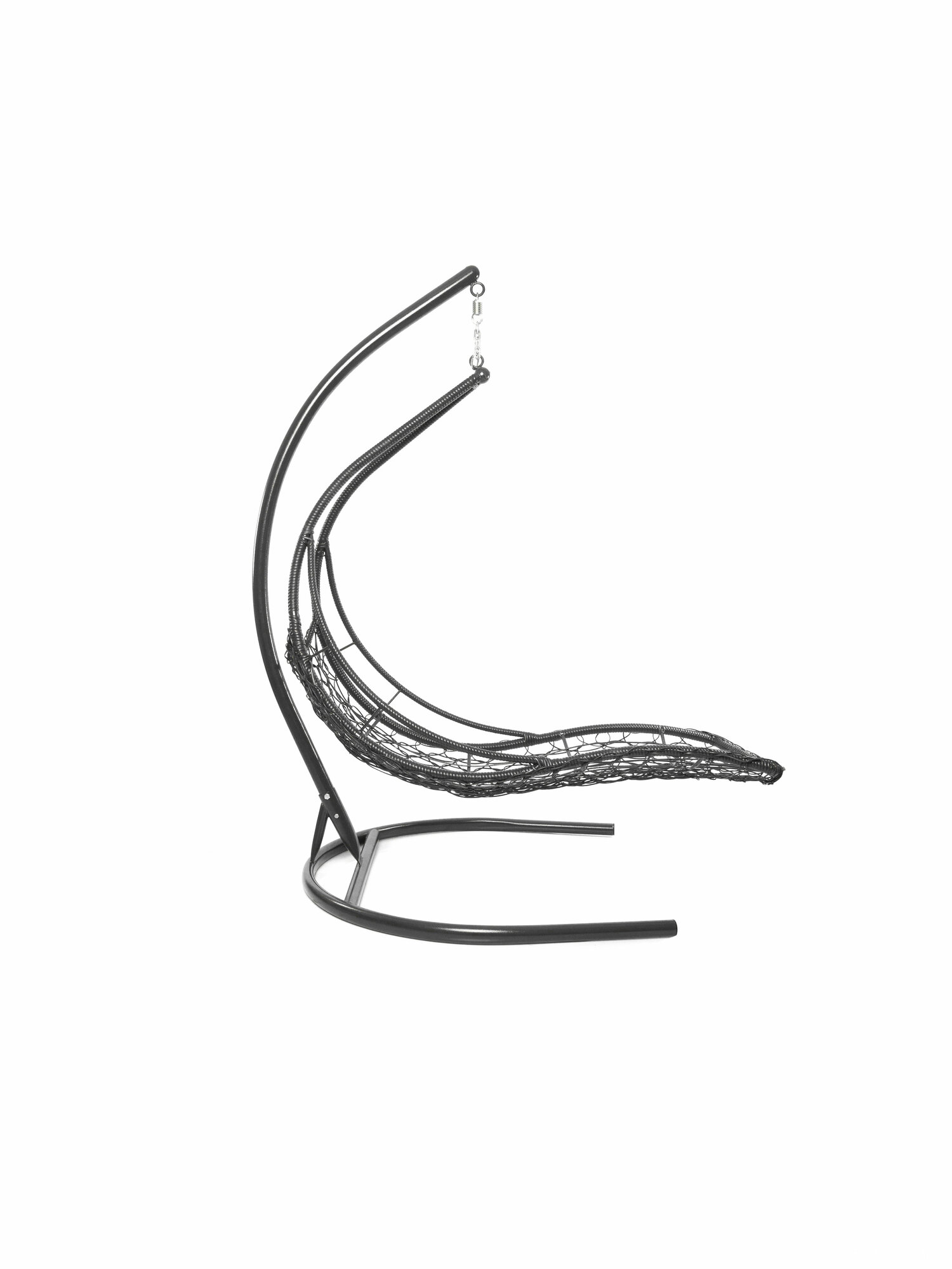 Подвесное кресло лежачее, с ротангом черное, серая подушка