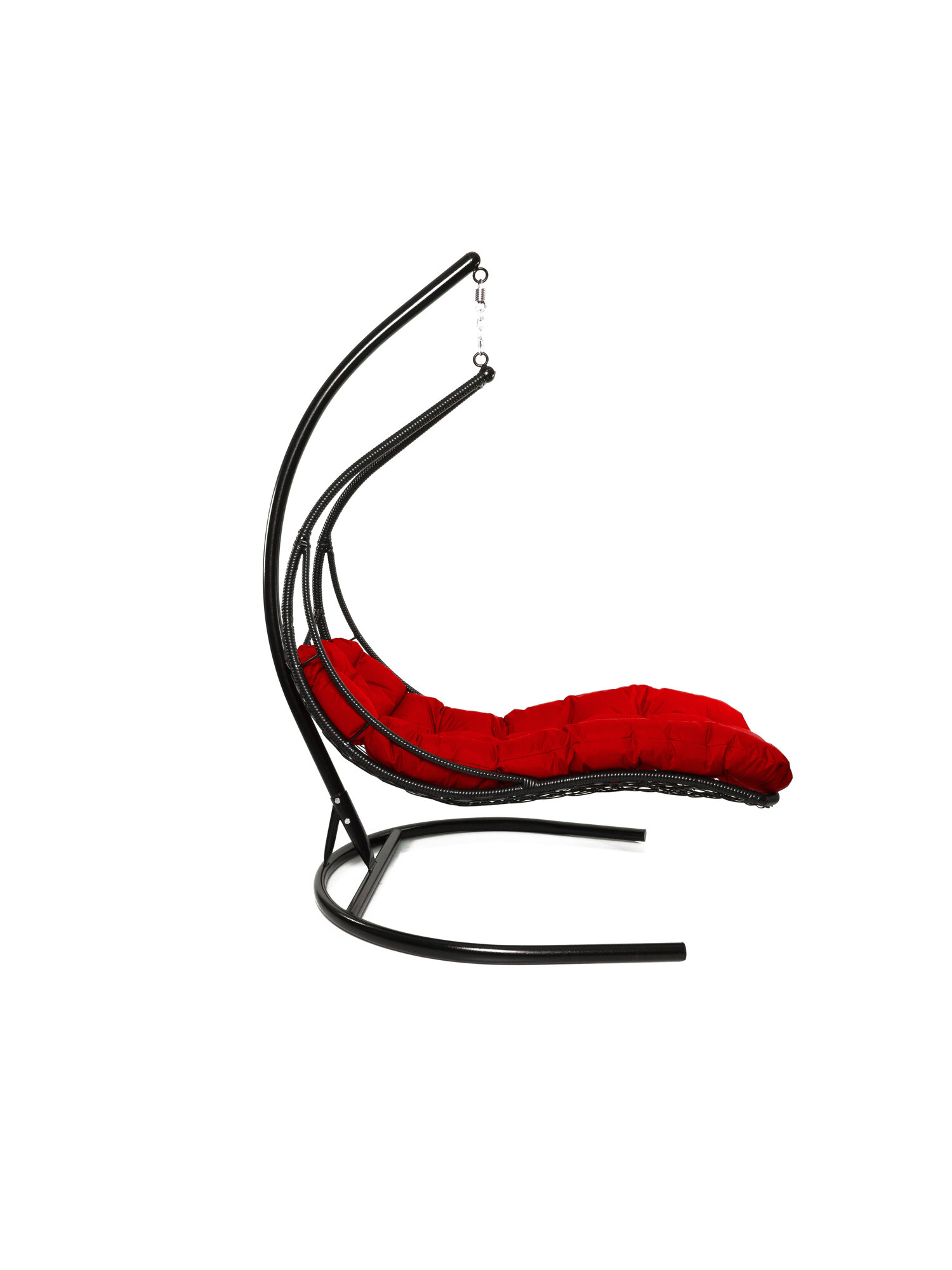 Подвесное кресло лежачее, с ротангом черное, красная подушка