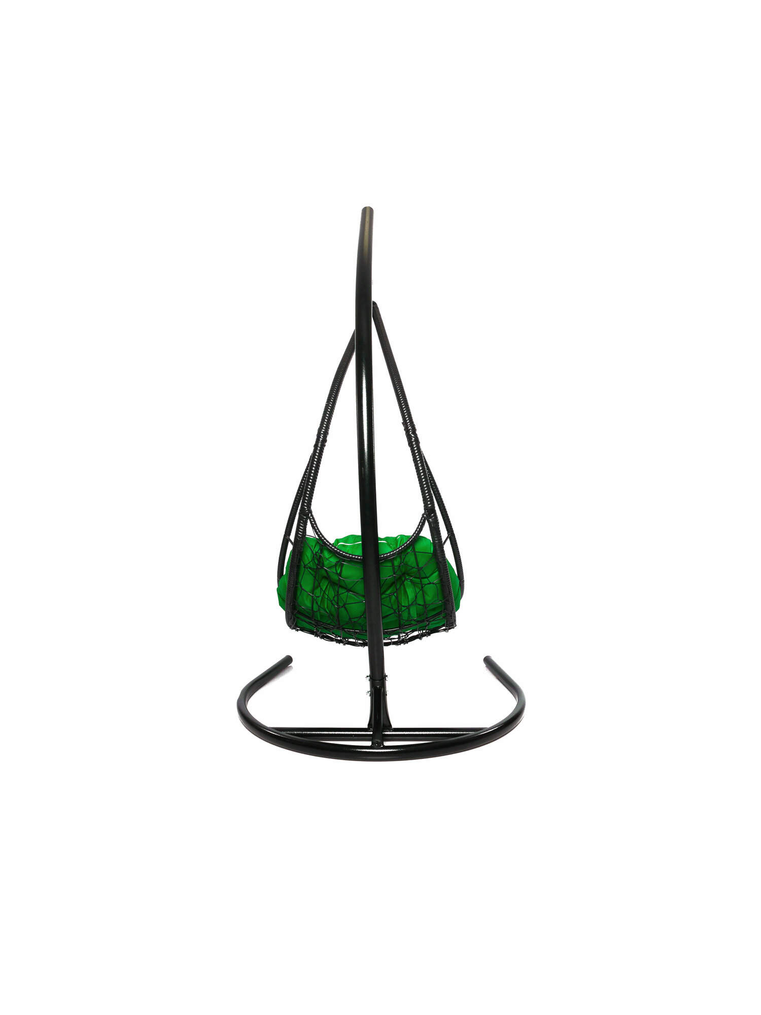 Подвесное кресло лежачее, с ротангом черное, зеленая подушка