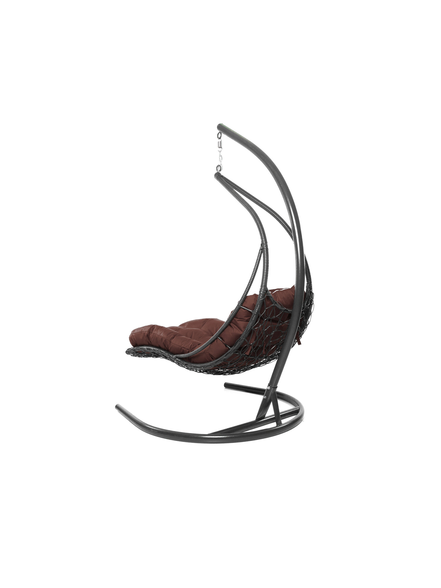 Подвесное кресло лежачее, с ротангом черное, коричневая подушка