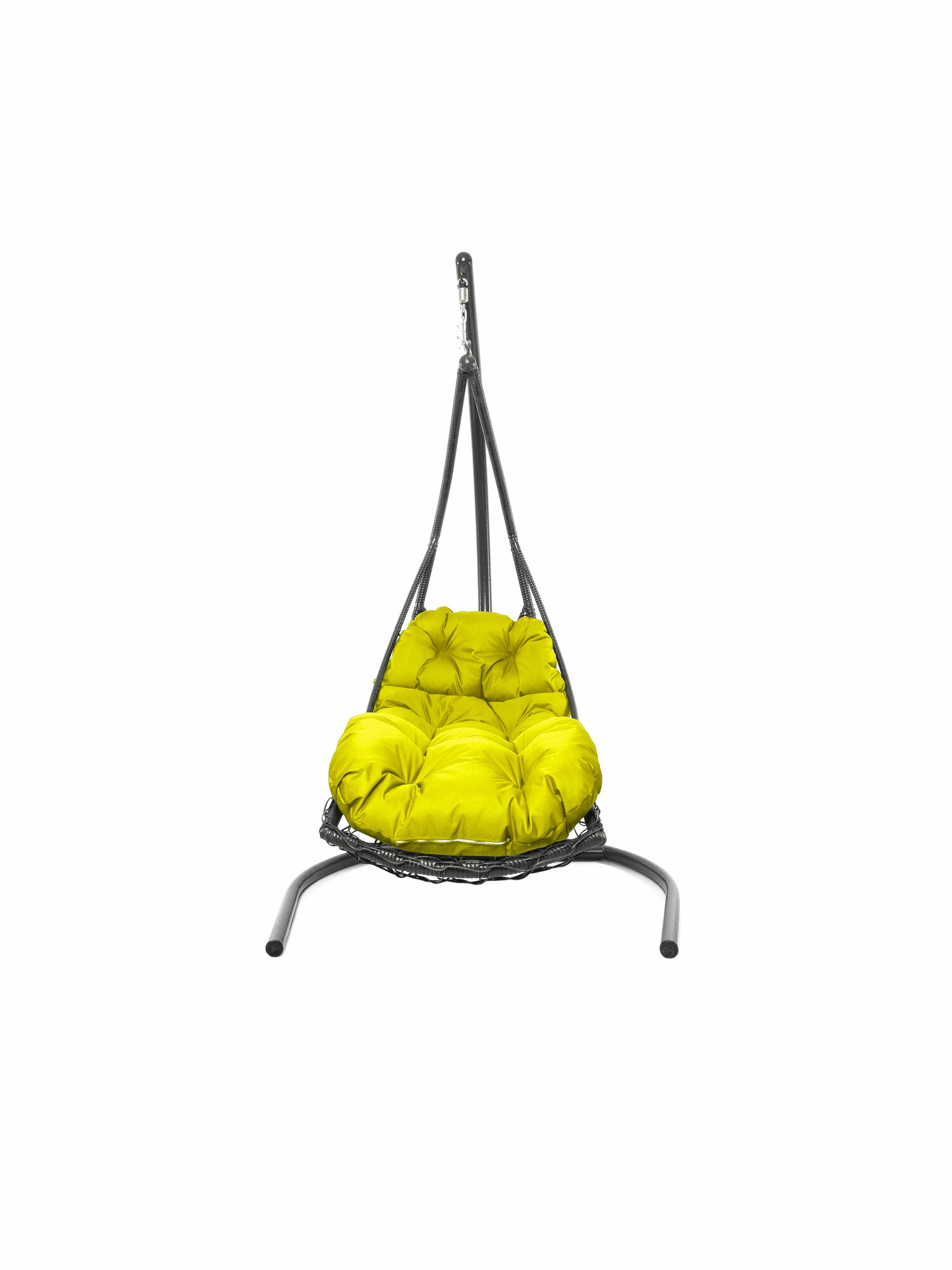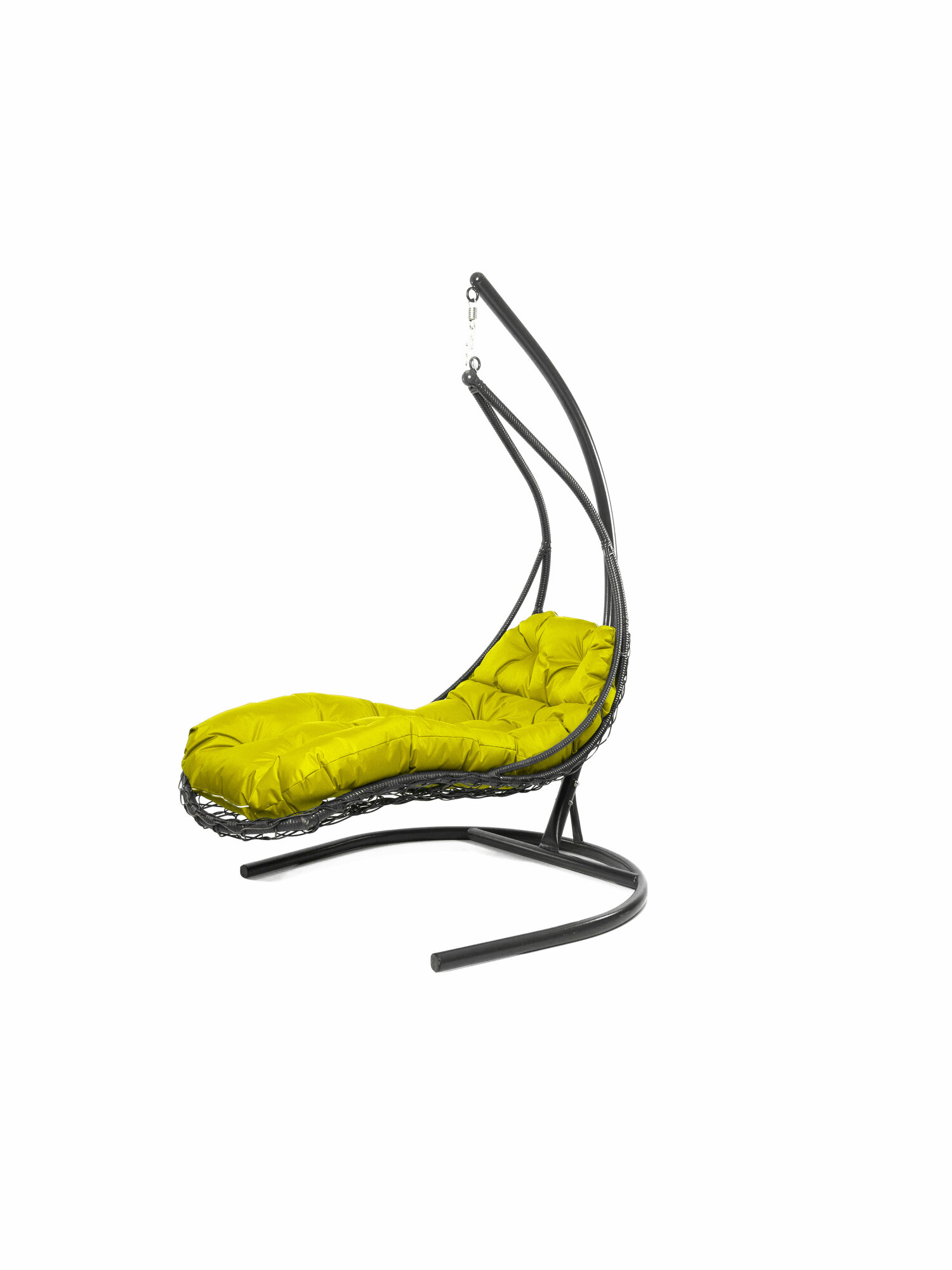 Подвесное кресло лежачее, с ротангом черное, желтая подушка