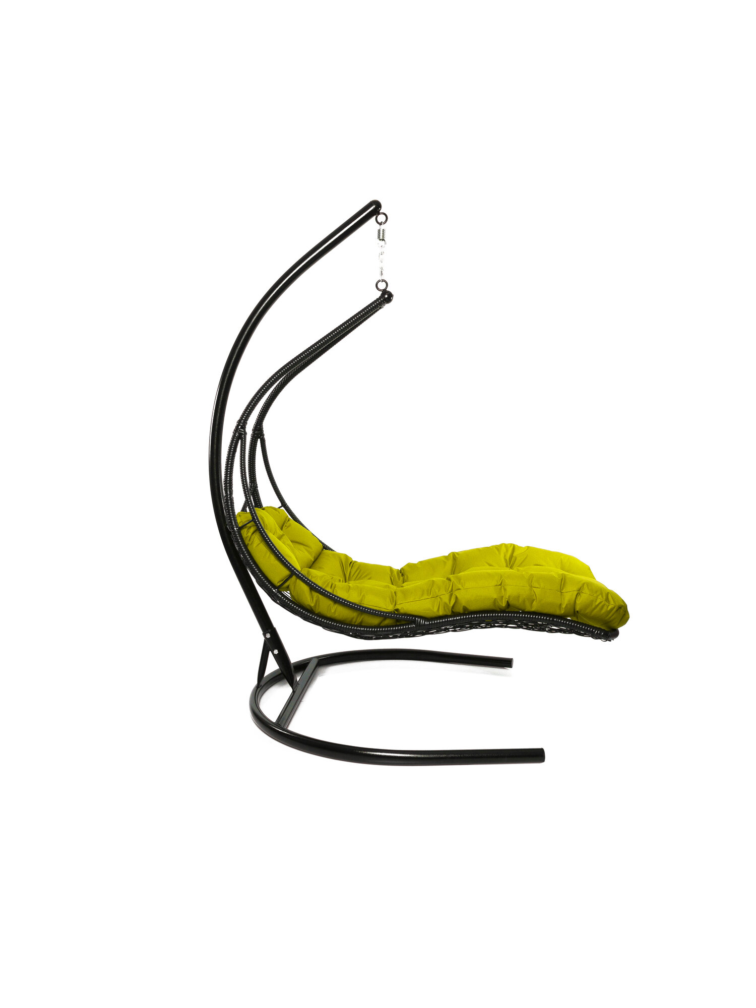 Подвесное кресло лежачее, с ротангом черное, зеленая подушка