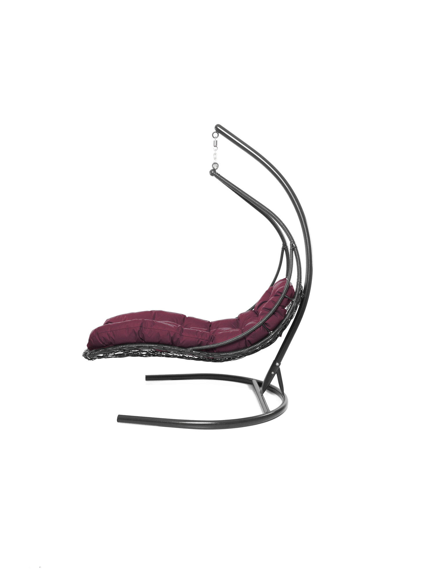 Подвесное кресло лежачее, с ротангом черное, бордовая подушка