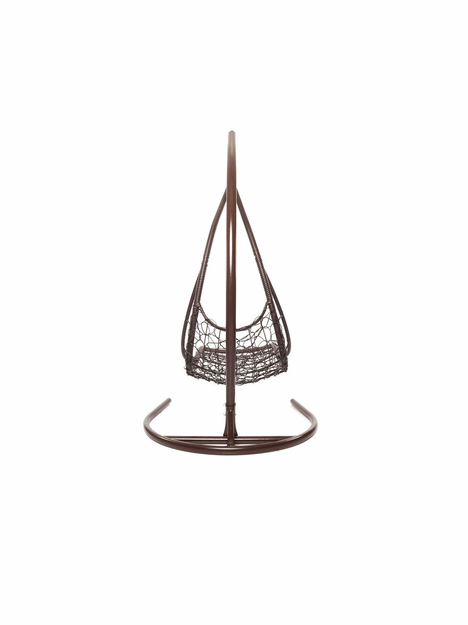 Подвесное кресло лежачее, с ротангом коричневое, коричневая подушка