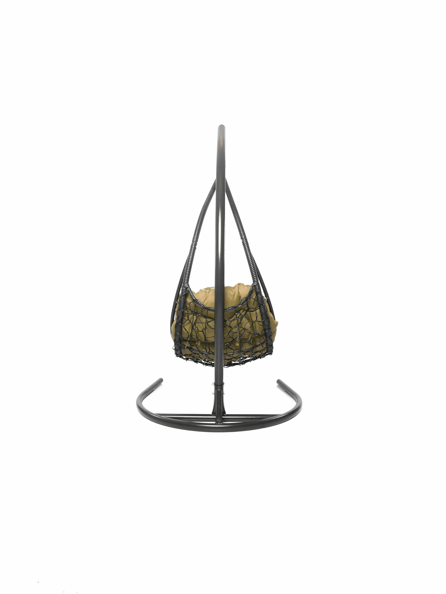 Подвесное кресло лежачее, с ротангом черное, зеленая подушка