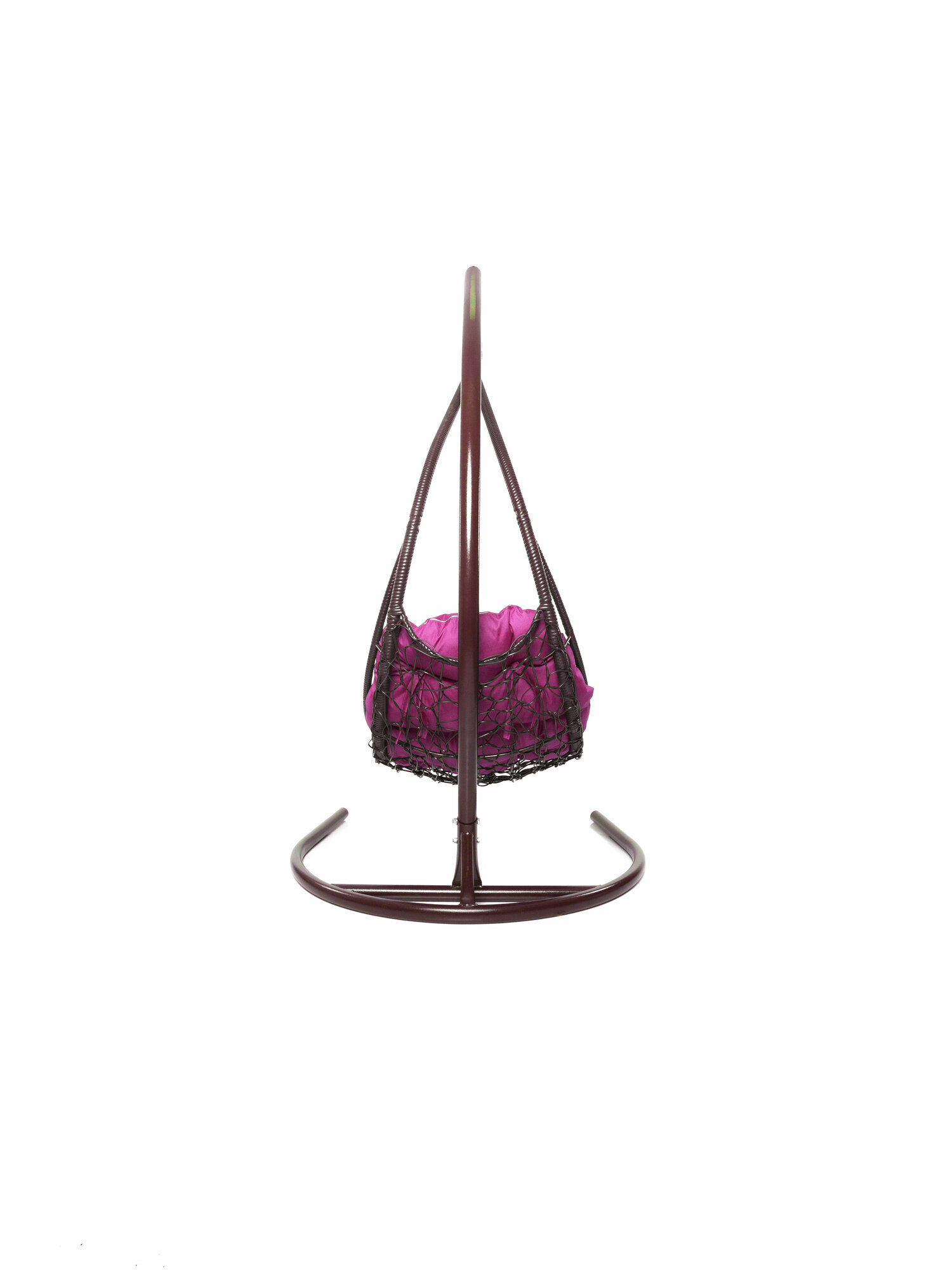 Подвесное кресло лежачее, с ротангом коричневое, розовая подушка