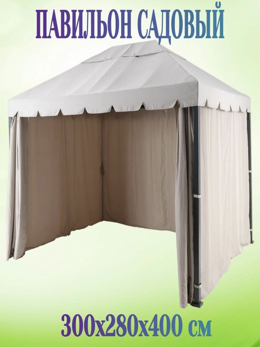 Беседка-павильон садовый 300x280x400 см, цвет серый, алюминиевая конструкция - для установки на открытом воздухе на даче, садовом участке. В жару укроет от солнечных лучей. интересное: