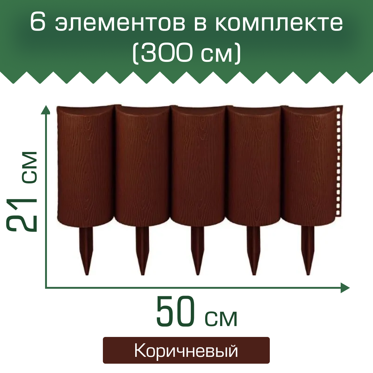 Купить Ограждение садовое "Садовый конструктор",Мастер сад, коричневое, высота 21 см
