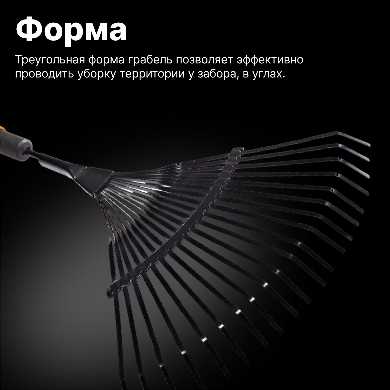 Грабли веерные металлические FISKARS QuikFit (22 гибких зуба, подходят черенки QuikFit: 1000666, 1000664, 1000661) (1000644) интересное:
