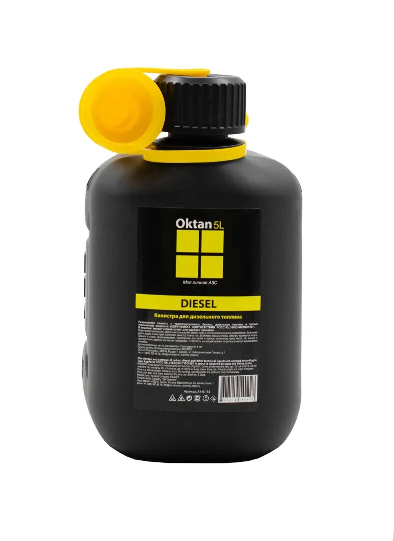 Канистра для бензина Oktan Дизель А1-01-15 автомобильная ГСМ 5 л пластиковая черная