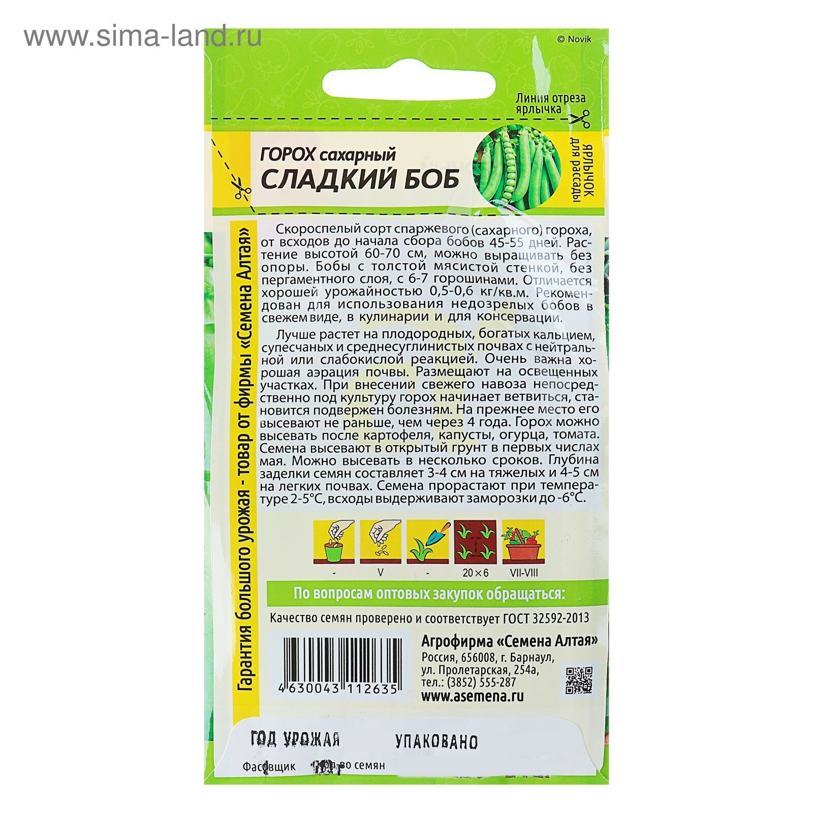 Семена Горох Алтайский Изумруд 10г (Семена Алтая) Белый пакет