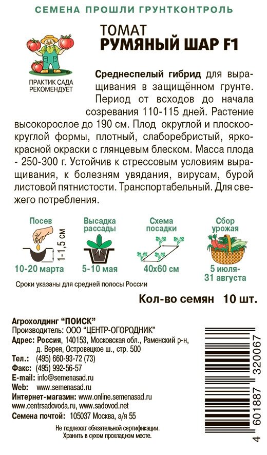 Купить Семена Томат Румяный шар F1 10шт Индет (Поиск) Вкуснотека