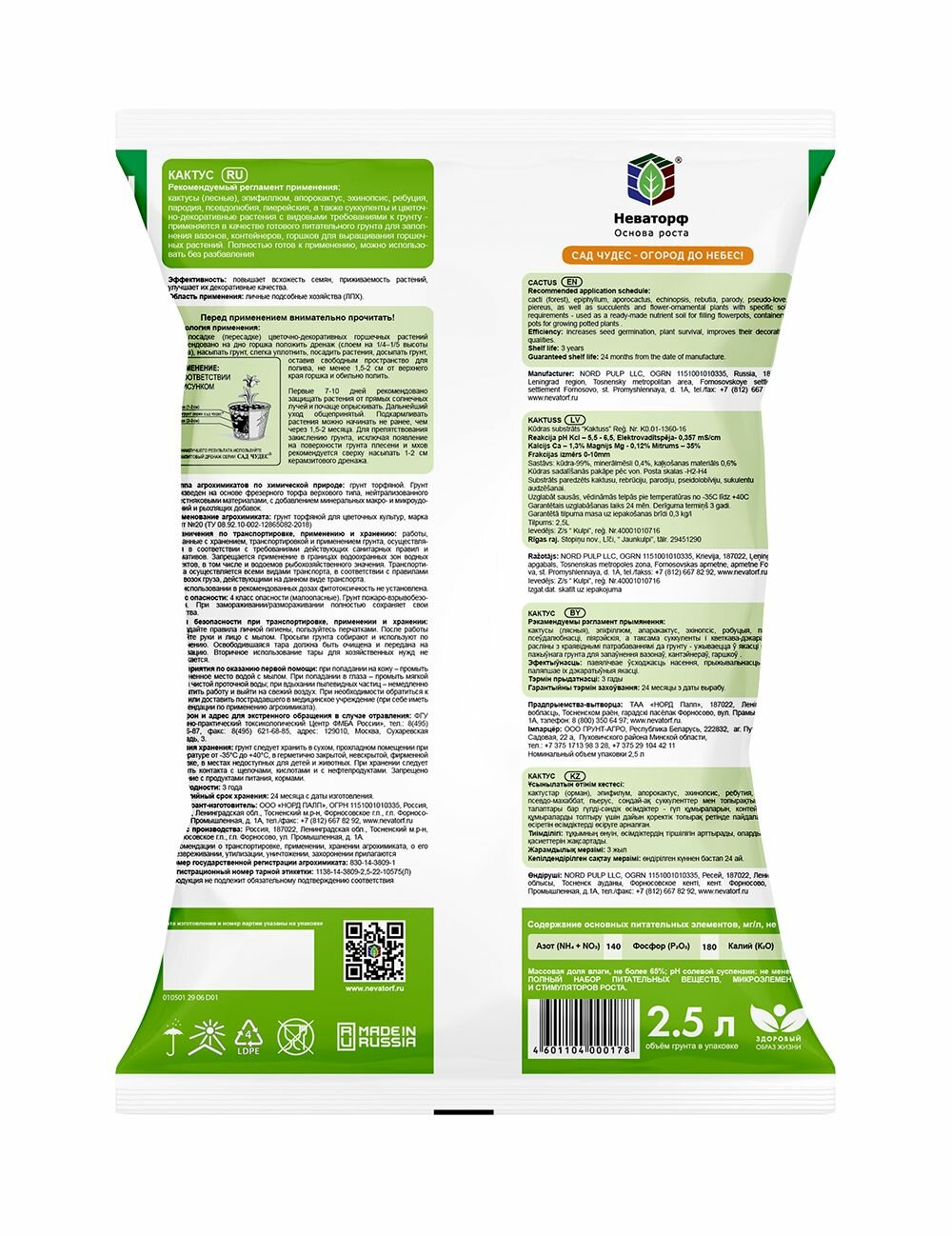 Почвогрунт "Кактус" от "норд палп" объемом 2,5 литра интересное: