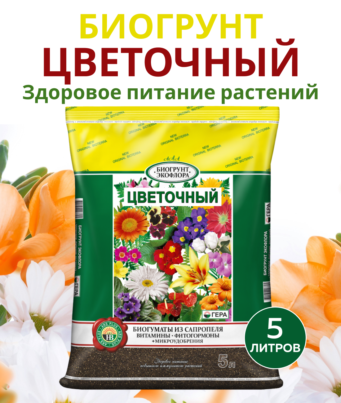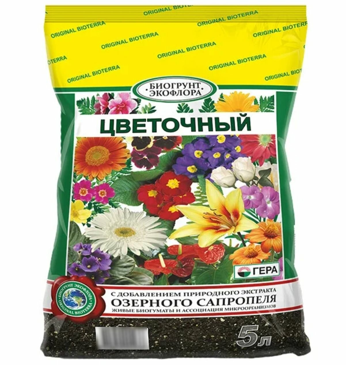 Грунт Гера Биогрунт Экофлора Цветочный Универсальный для растений и семян, 5 л