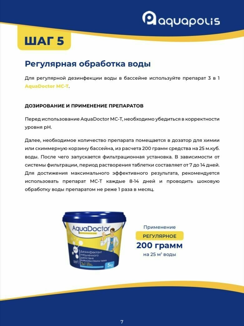 Средство по уходу за водой в бассейне AquaDoctor MC-T 200 гр 5 кг.