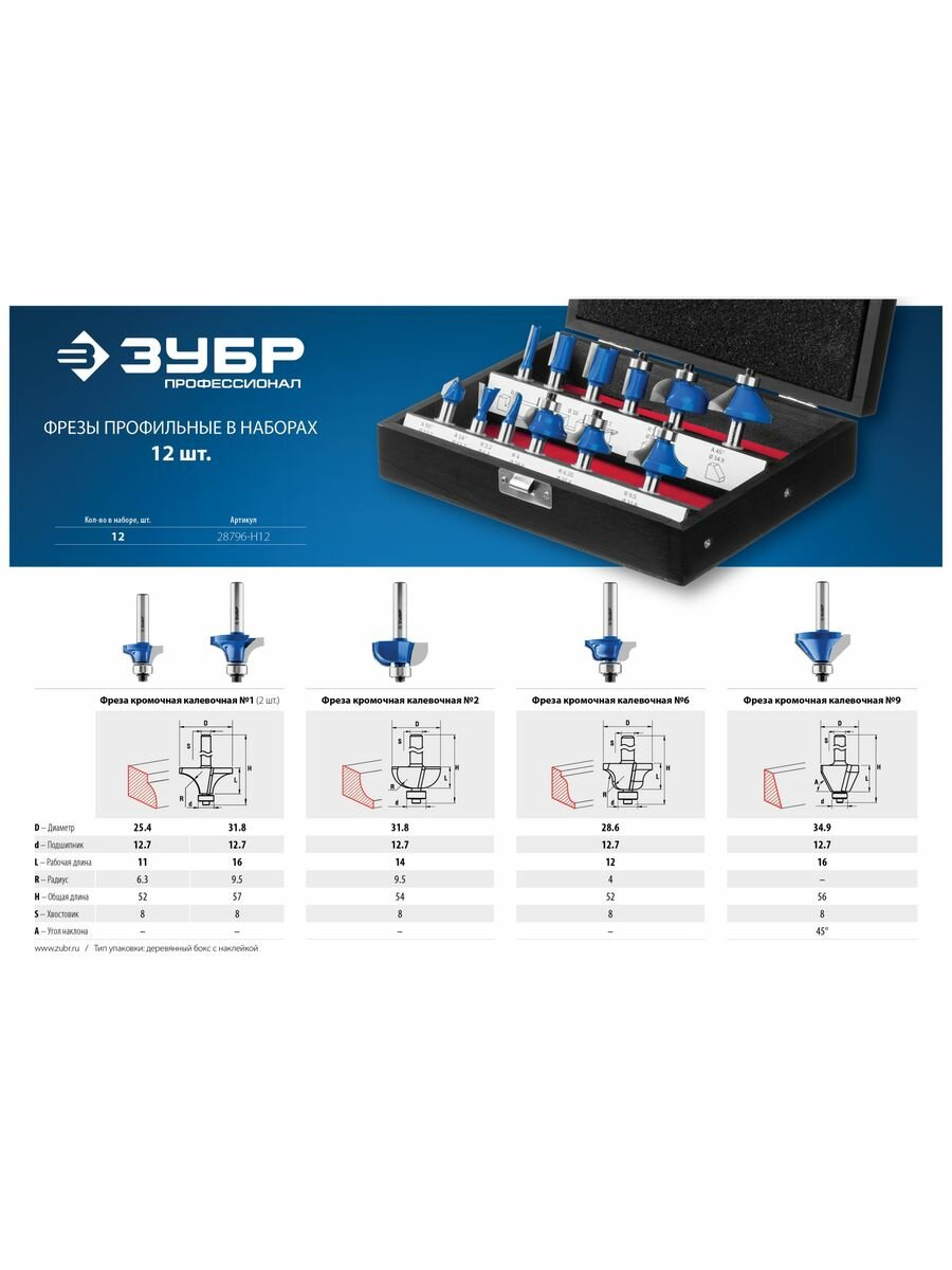 Купить ЗУБР набор профильных фрез по дереву, 12 шт., 28796-H12 Профессионал