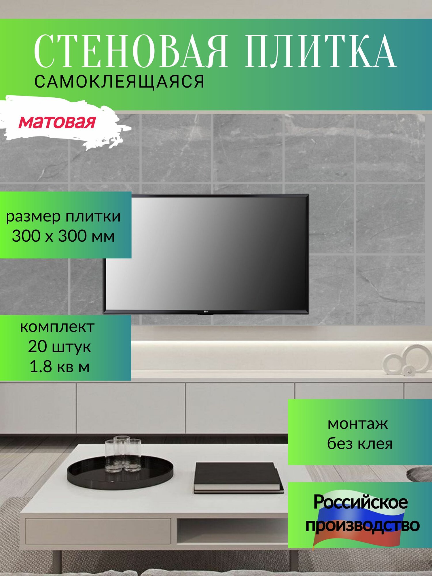 Плитка жесткая самоклеящаяся "Тиберий" стеновые панели ПВХ для декора 30х30 см, 20шт.