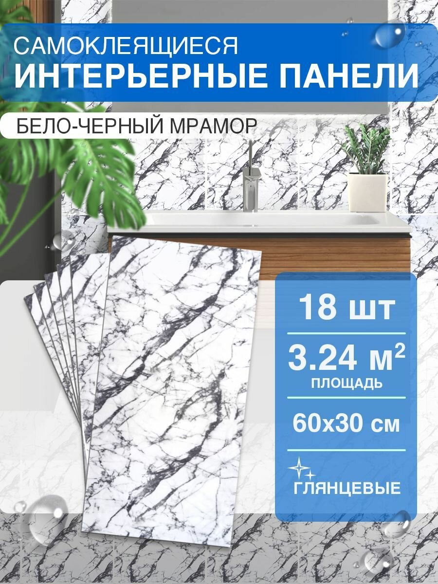 Купить Самоклеящиеся панели ПВХ. Плитка для стен. Бело-черный мрамор 18 шт